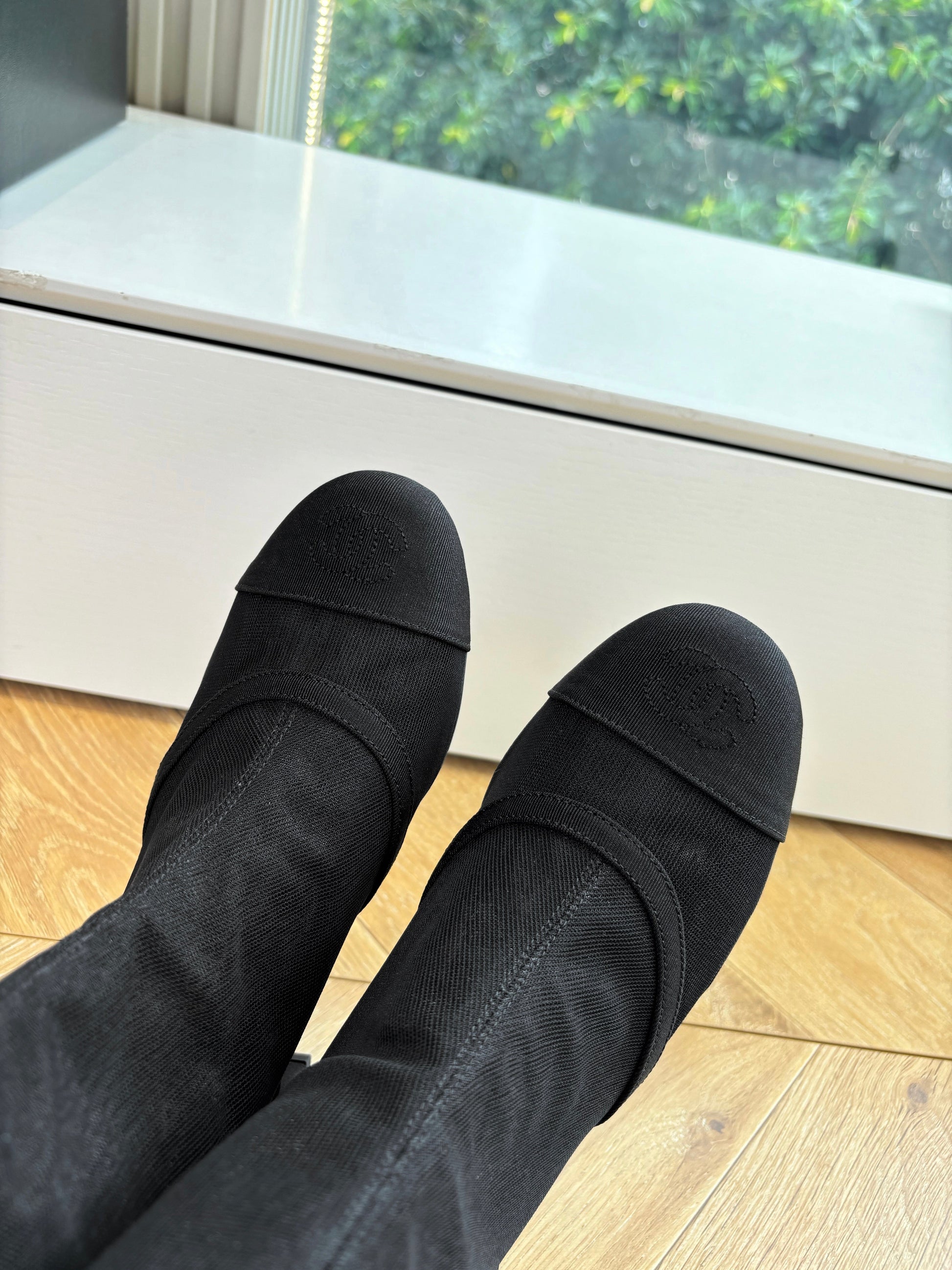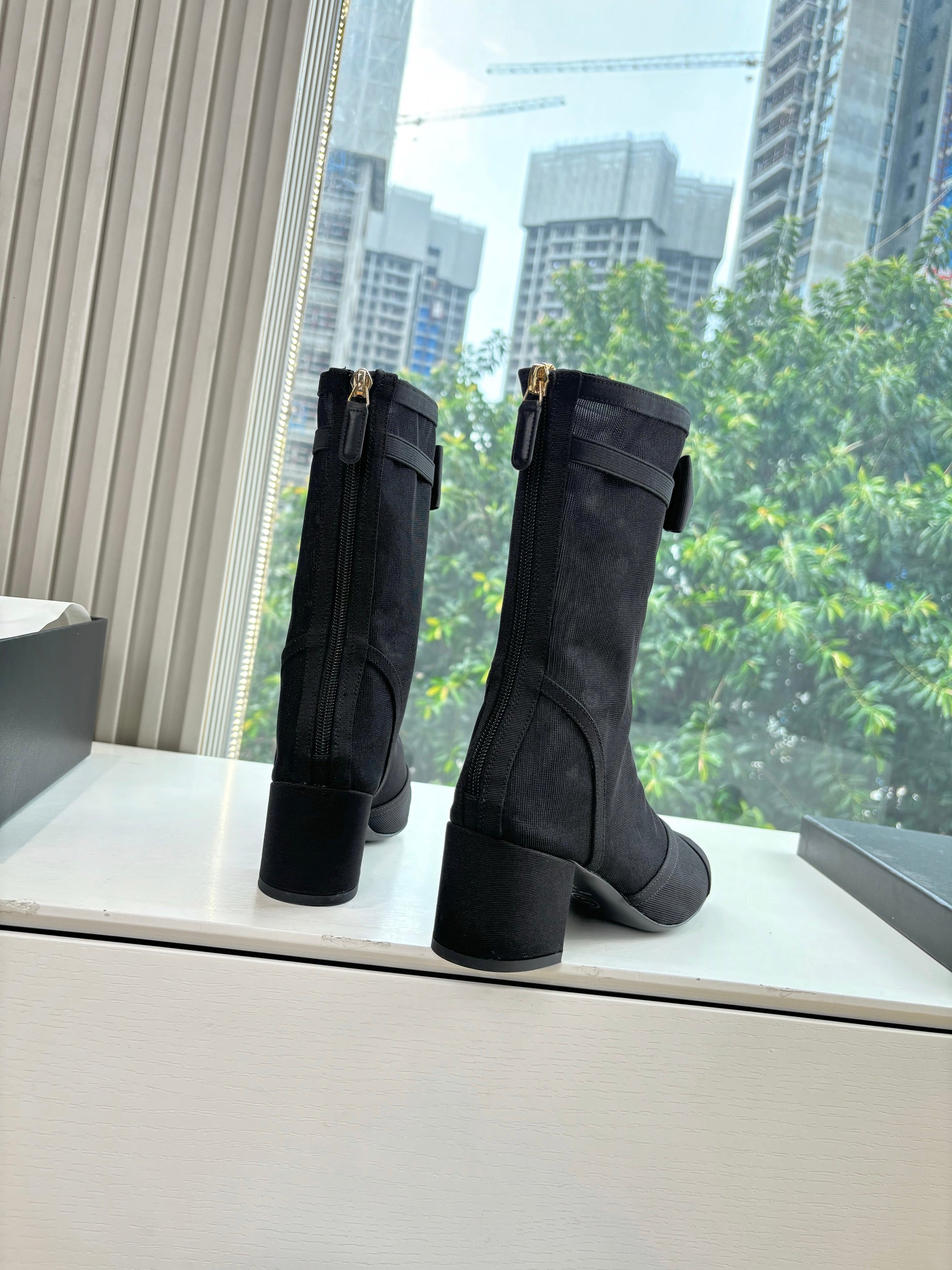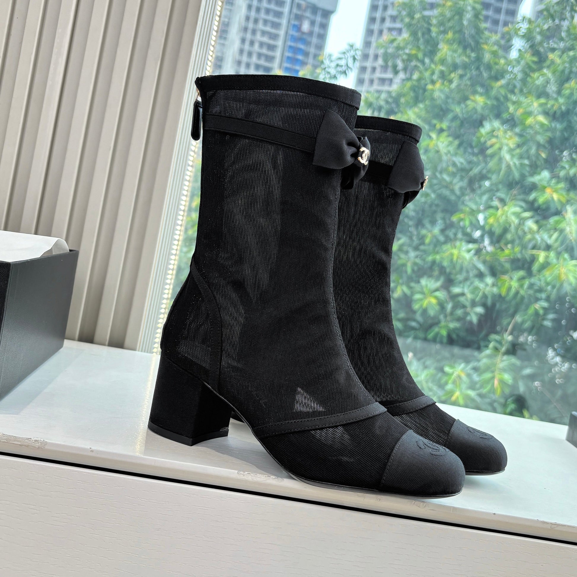 CC 25 Short Boot Black Mesh Calfskin Black Bow 430322