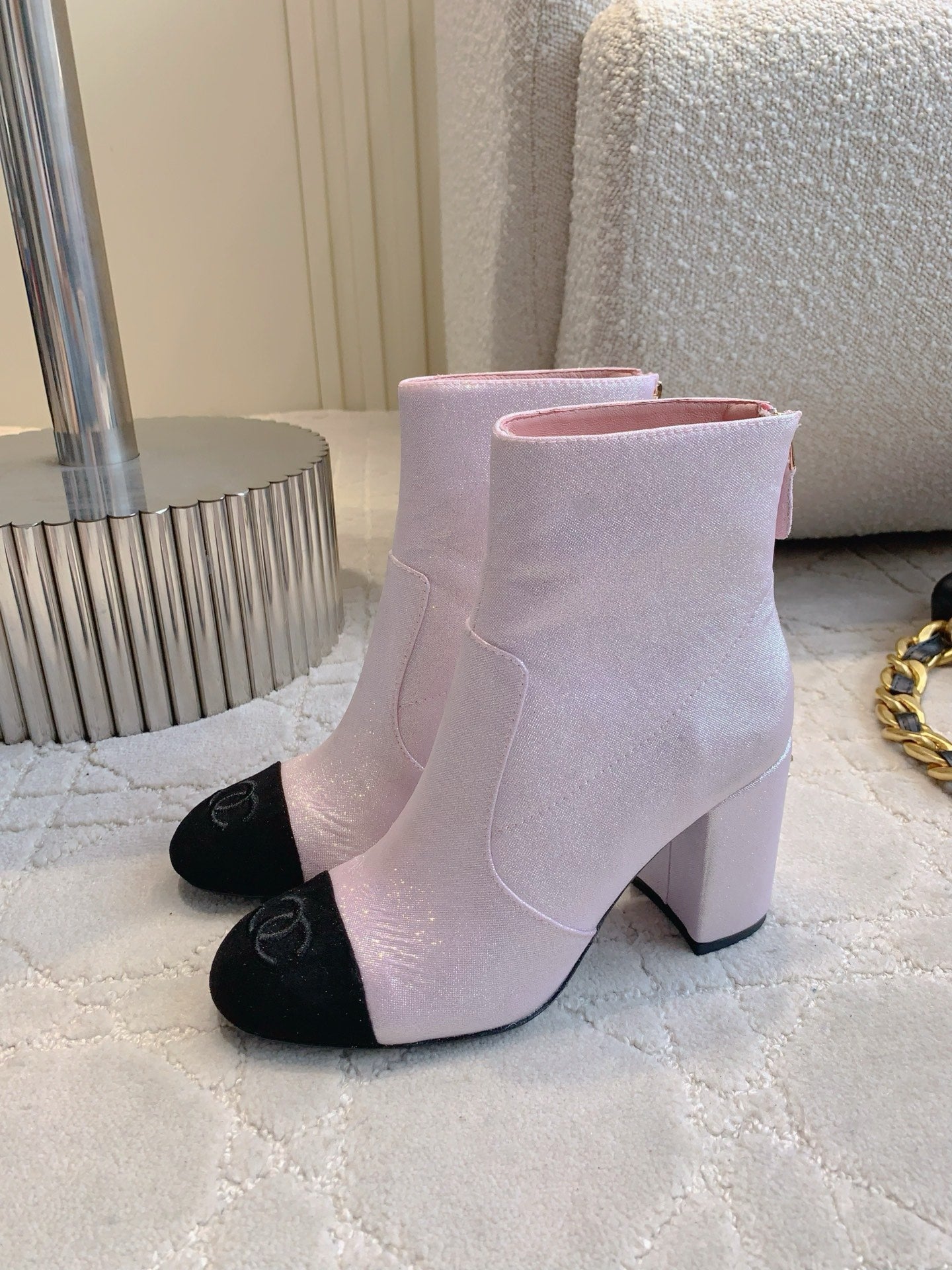 CC 25 Short Boot Pink Black Fabric Sheepskin 516639