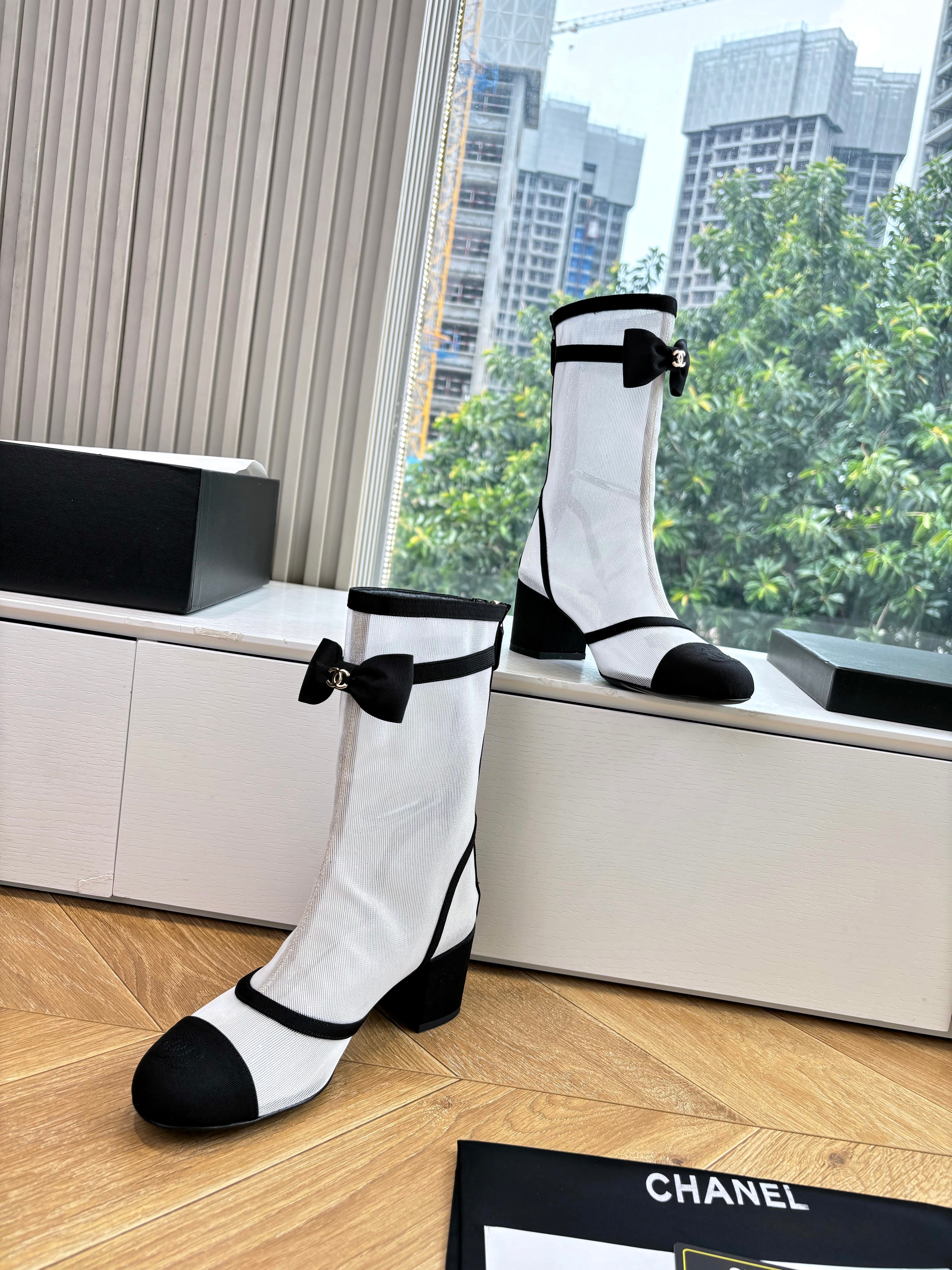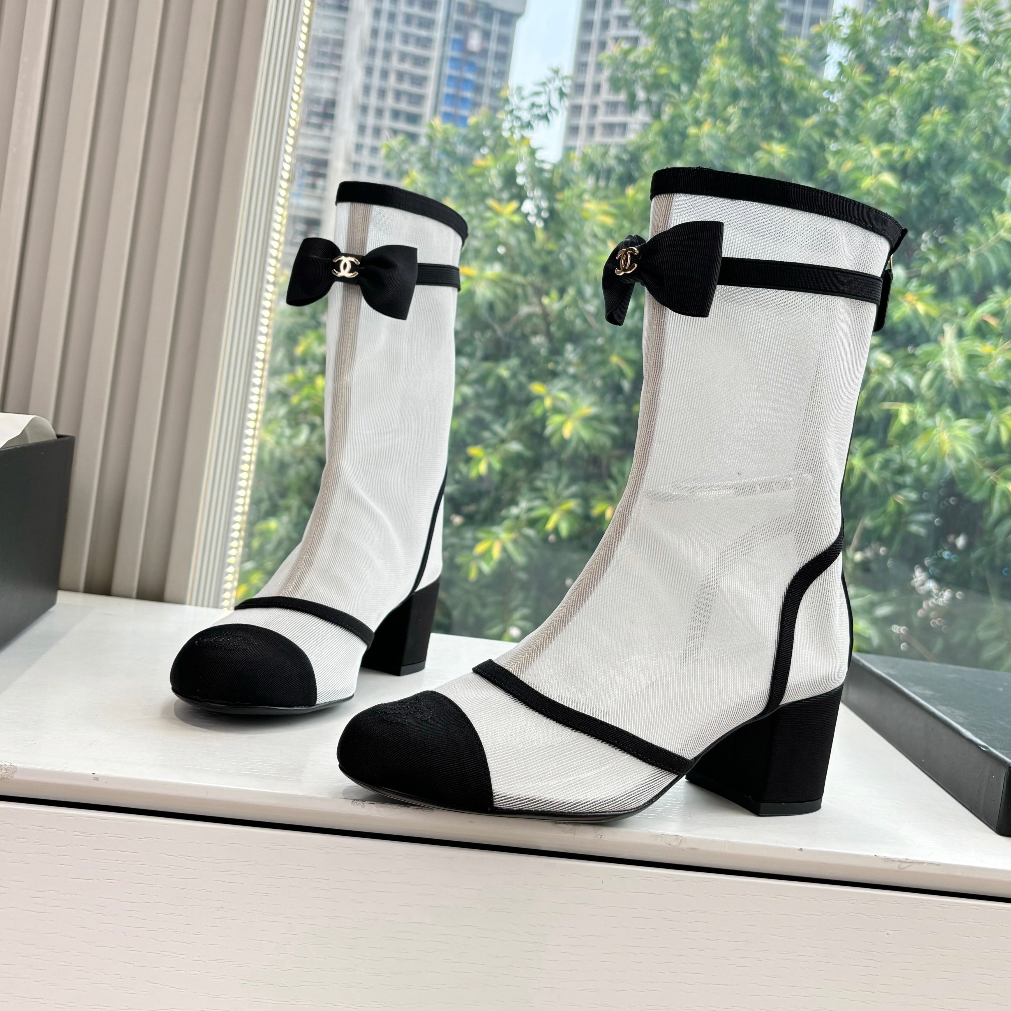 CC 25 Short Boot White Mesh Black Bow 430323