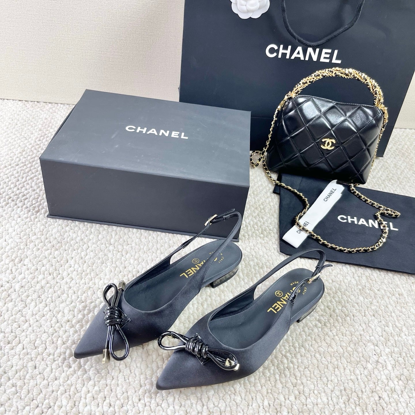 CC 25 Slingback Flats Black Silk 330921