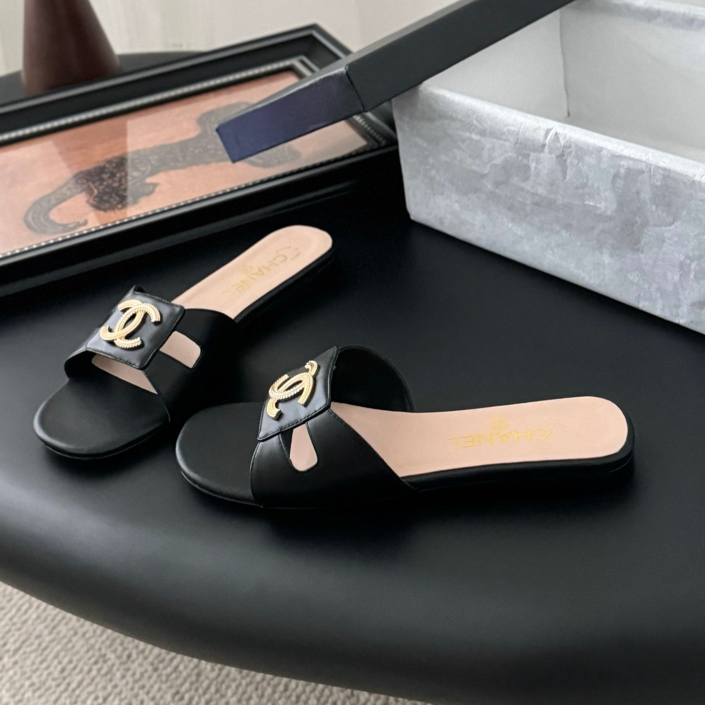 CC 25 Slippers Black Cowhide 305283
