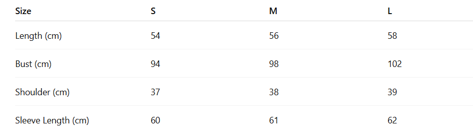 - Size : S, M, L