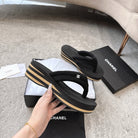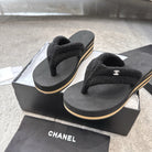 CC 25 Thong Slippers Black Woolen Cloth 311099
