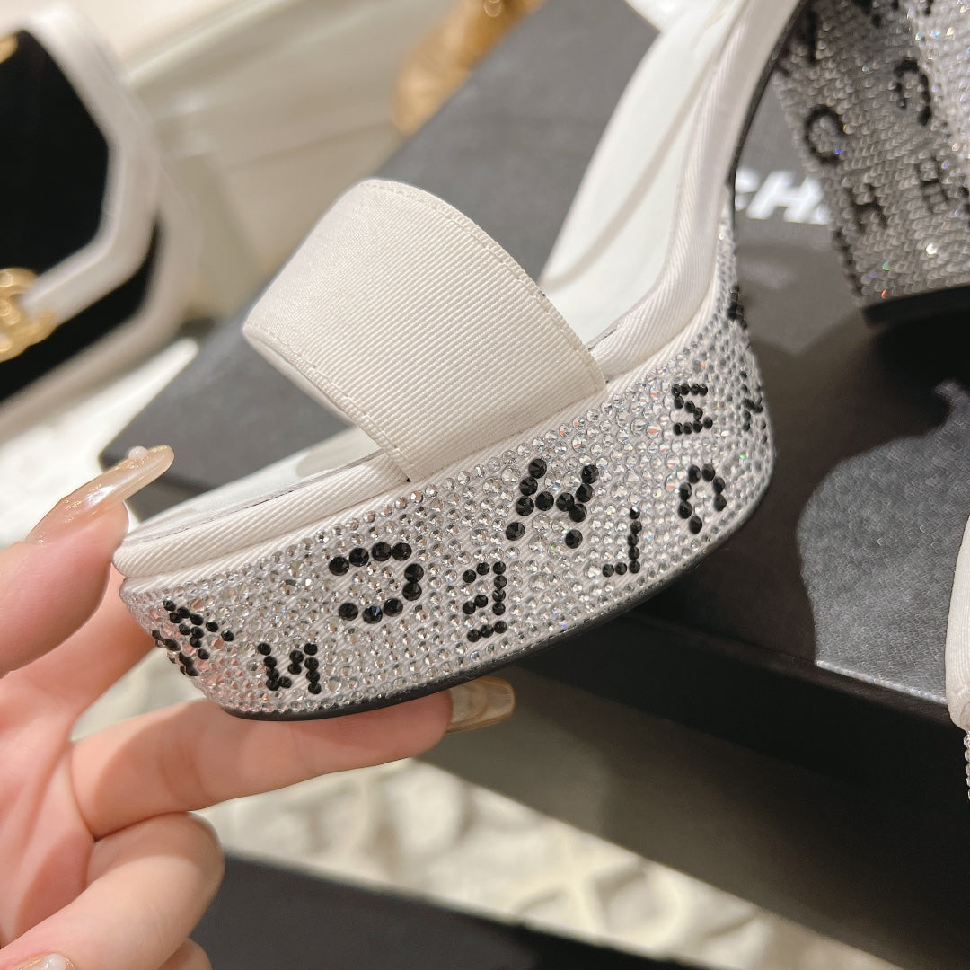 CC 25C 10CM Mid Heed Sandals White Fabric 213325