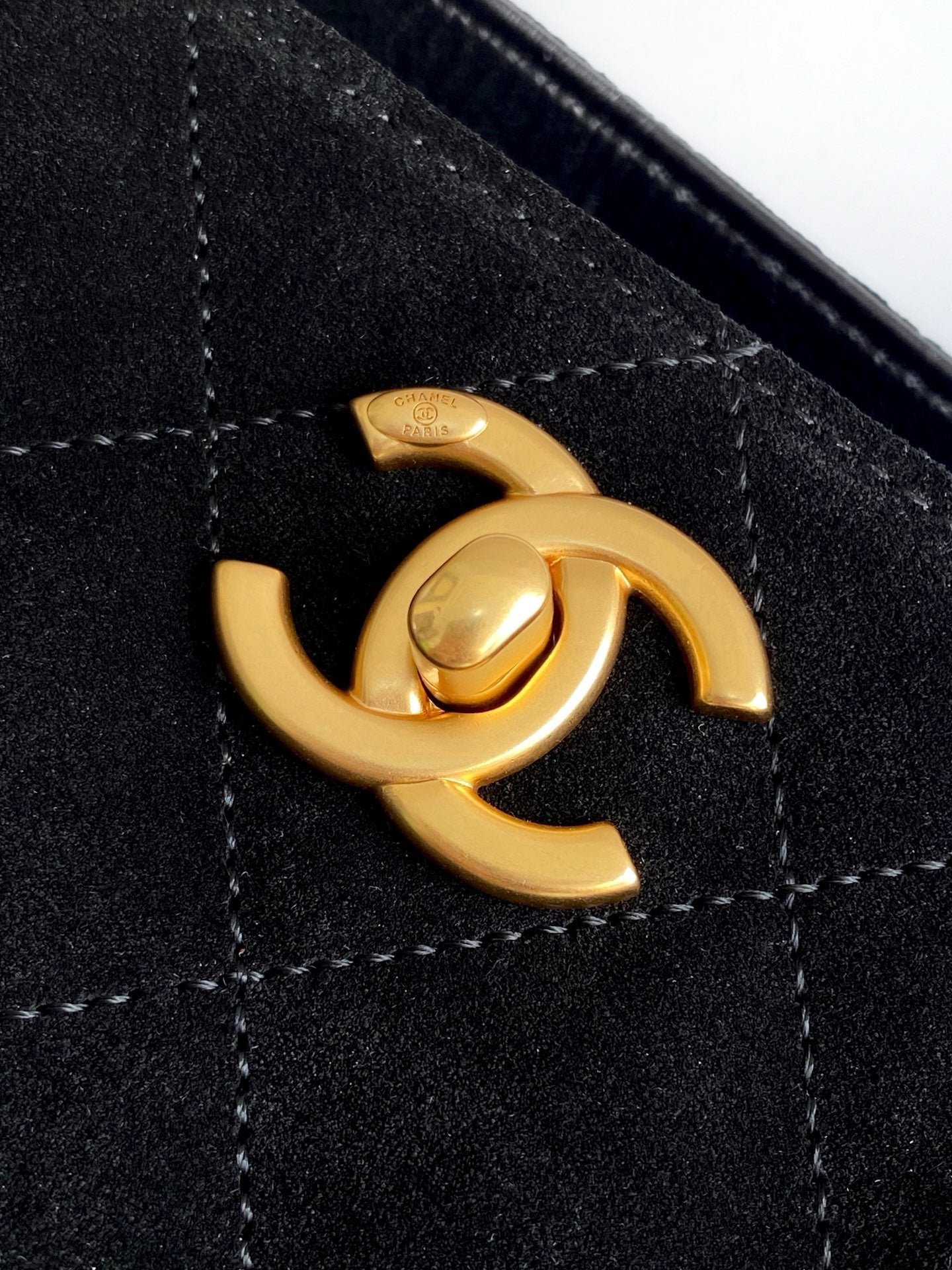 CC 25C Hobo Bag 31cm Black Matelasse Suede