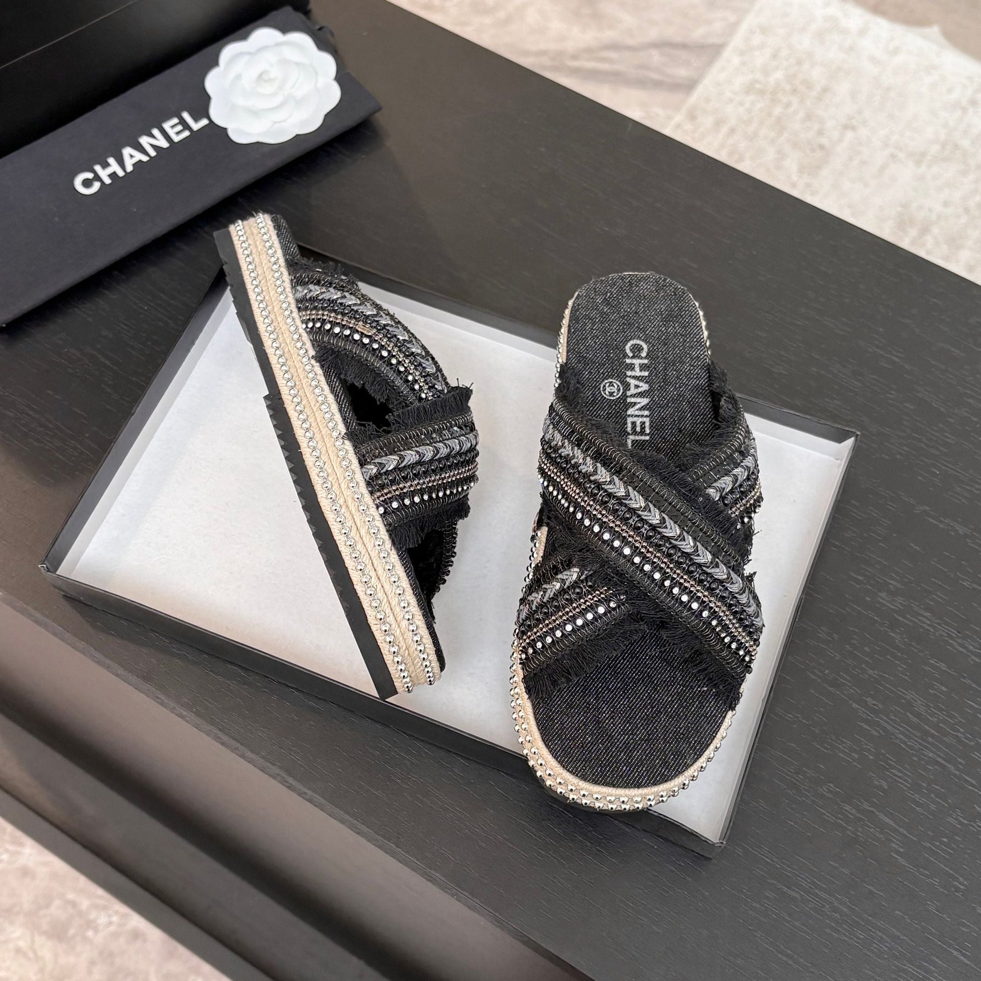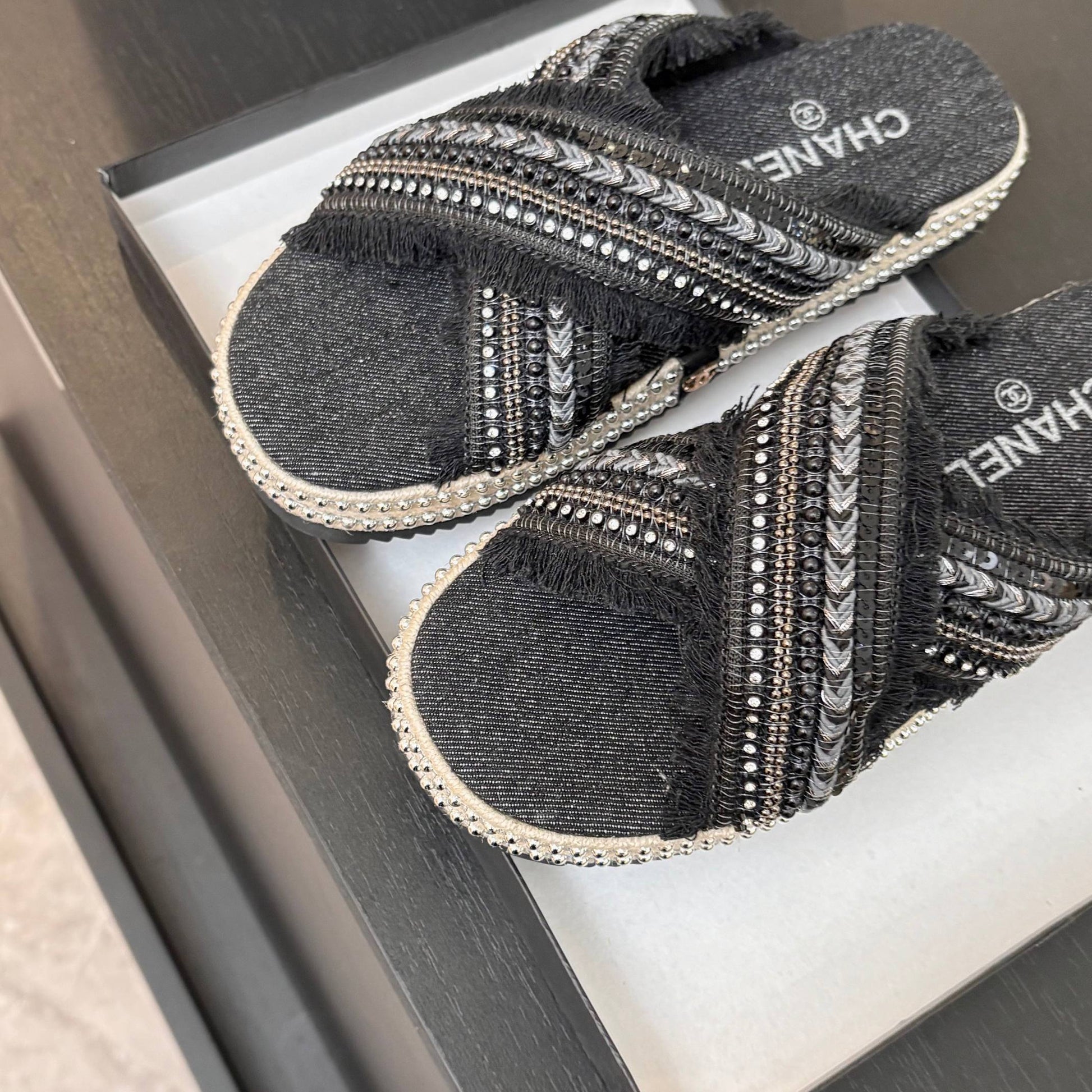 CC 25C Thick-Soled Slipper In Black Denim Space blue Fabric 213231
