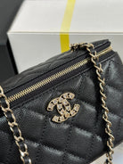 CC 25C Vanity Case 17cm Black Caviar Leather Heart Rhinestone Light Gold Hardware 243427