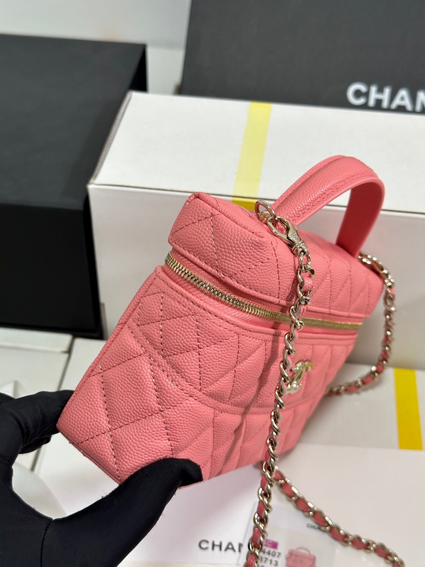 CC 25C Vanity Case 19.5cm Salmon Pink Calfskin Silver Hardware 243635