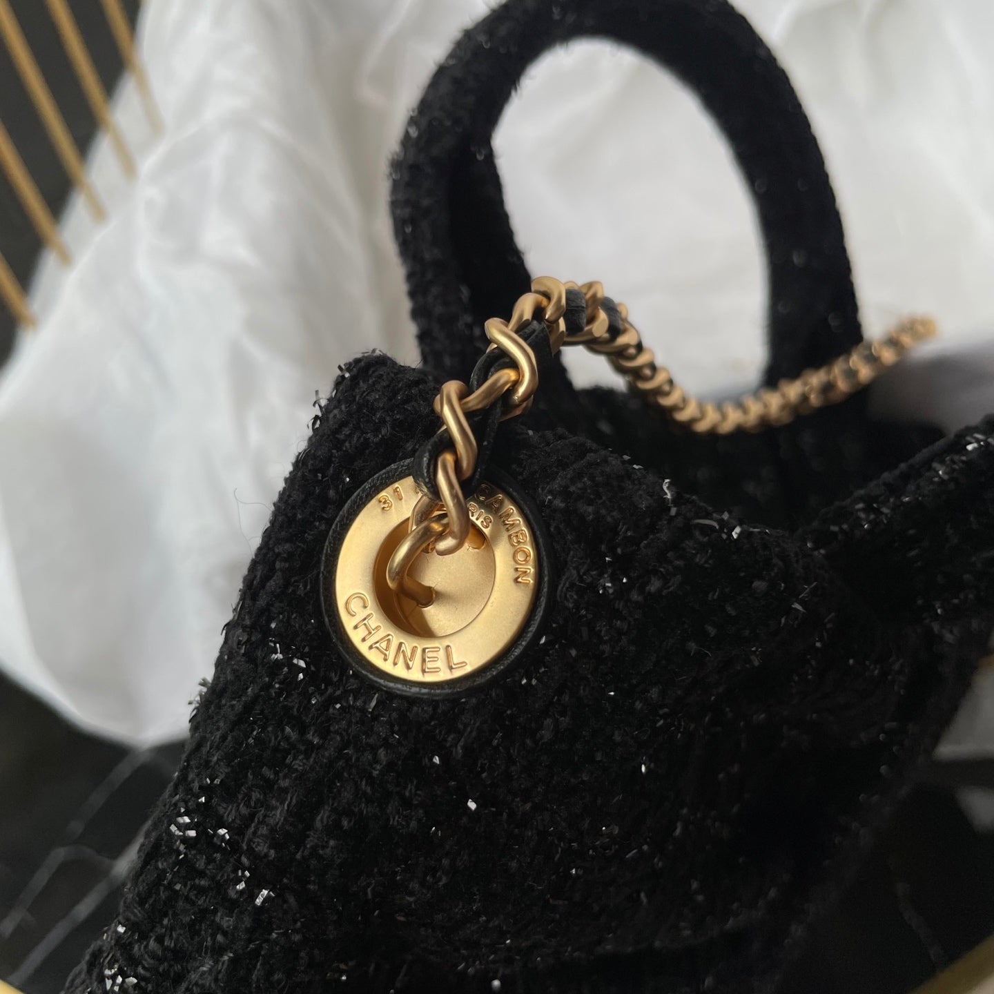 CC 25K Mini Bow Bag 26cm Black Tweed