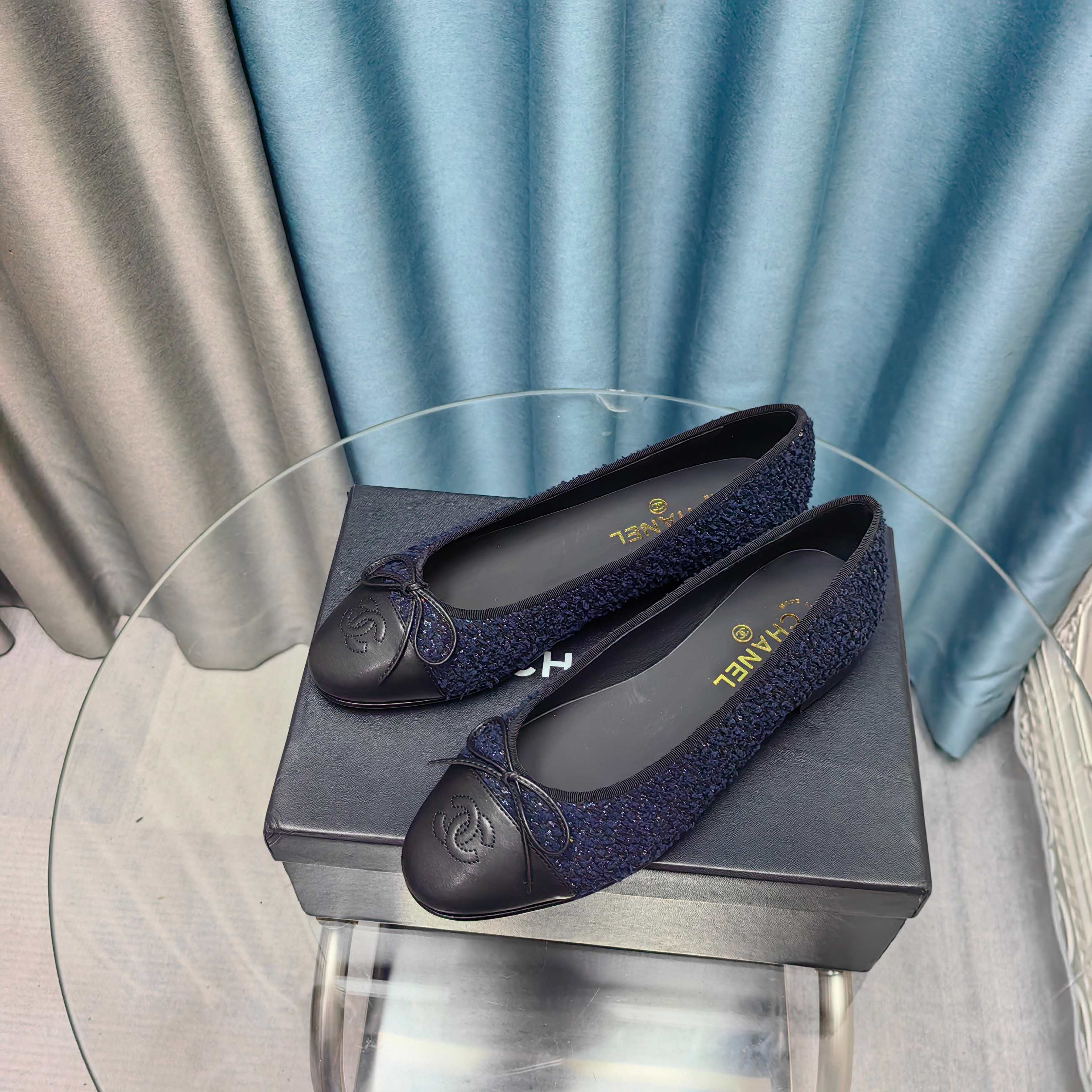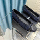 CC 25P Ballet Flat Dark Blue Tweed Black Calfskin