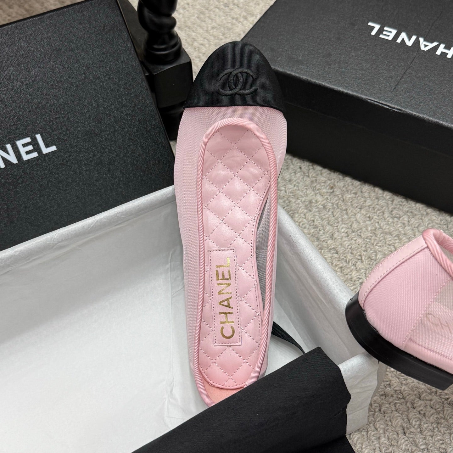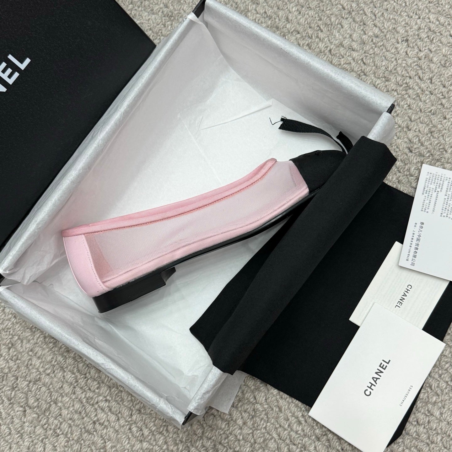 CC 25p Ballet Flat Pink Mesh Fabric Grosgrain