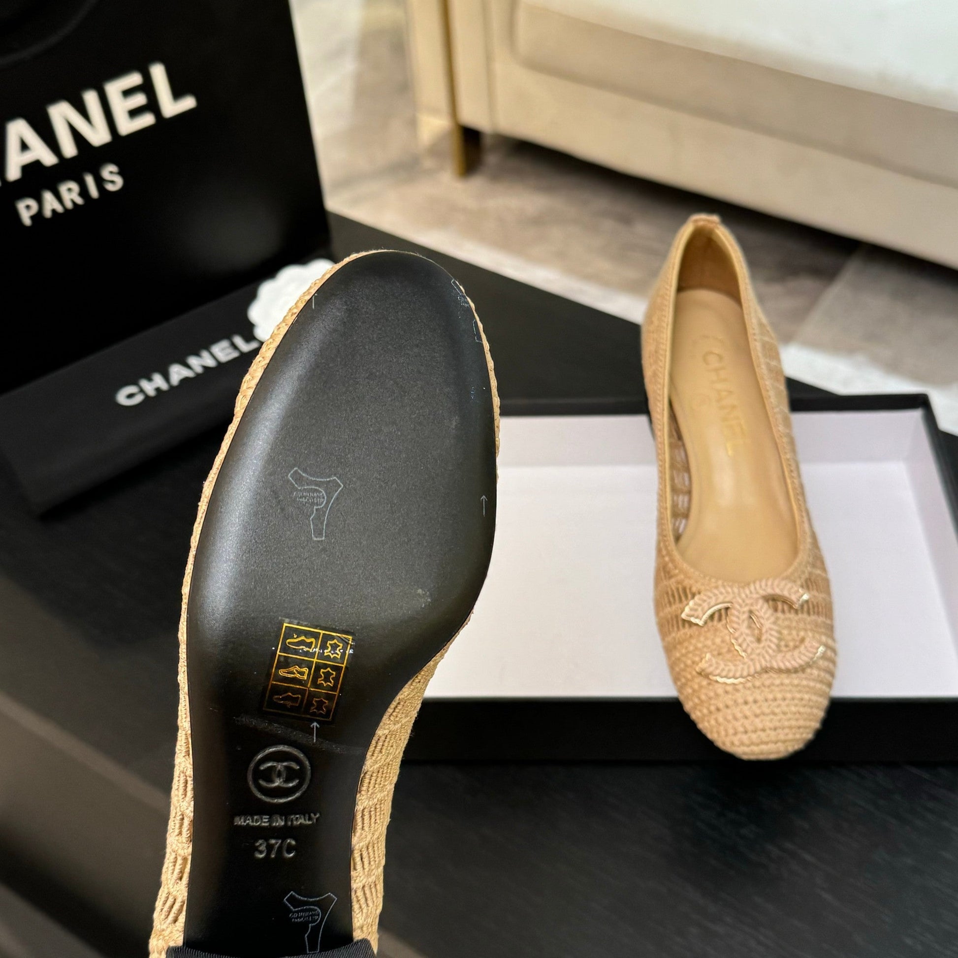 CC 25P Ballet Heel 50mm Beige Raffia Large Logo