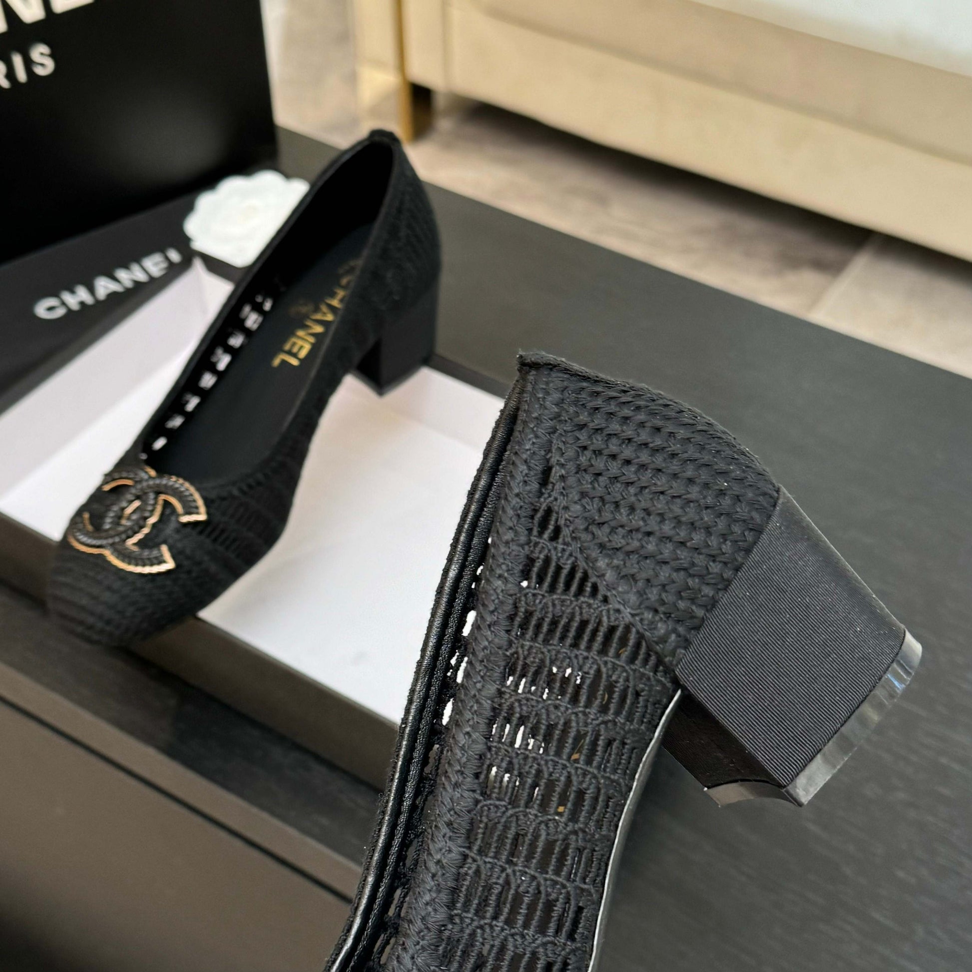CC 25P Ballet Heel 50mm Black Raffia Large Logo