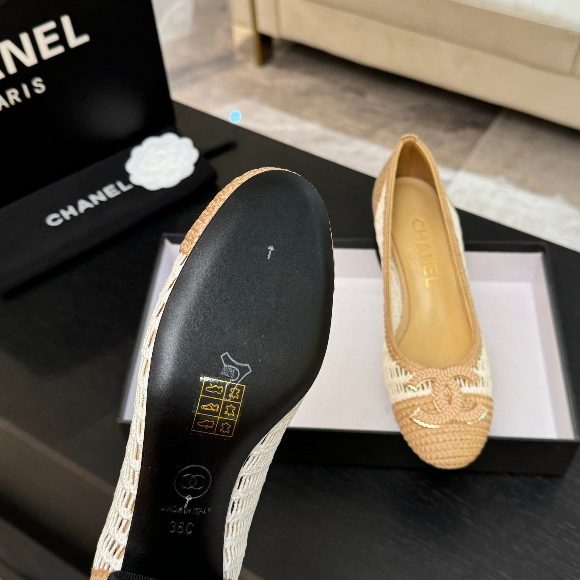 CC 25P Ballet Heel 50mm White Beige Raffia Large Logo