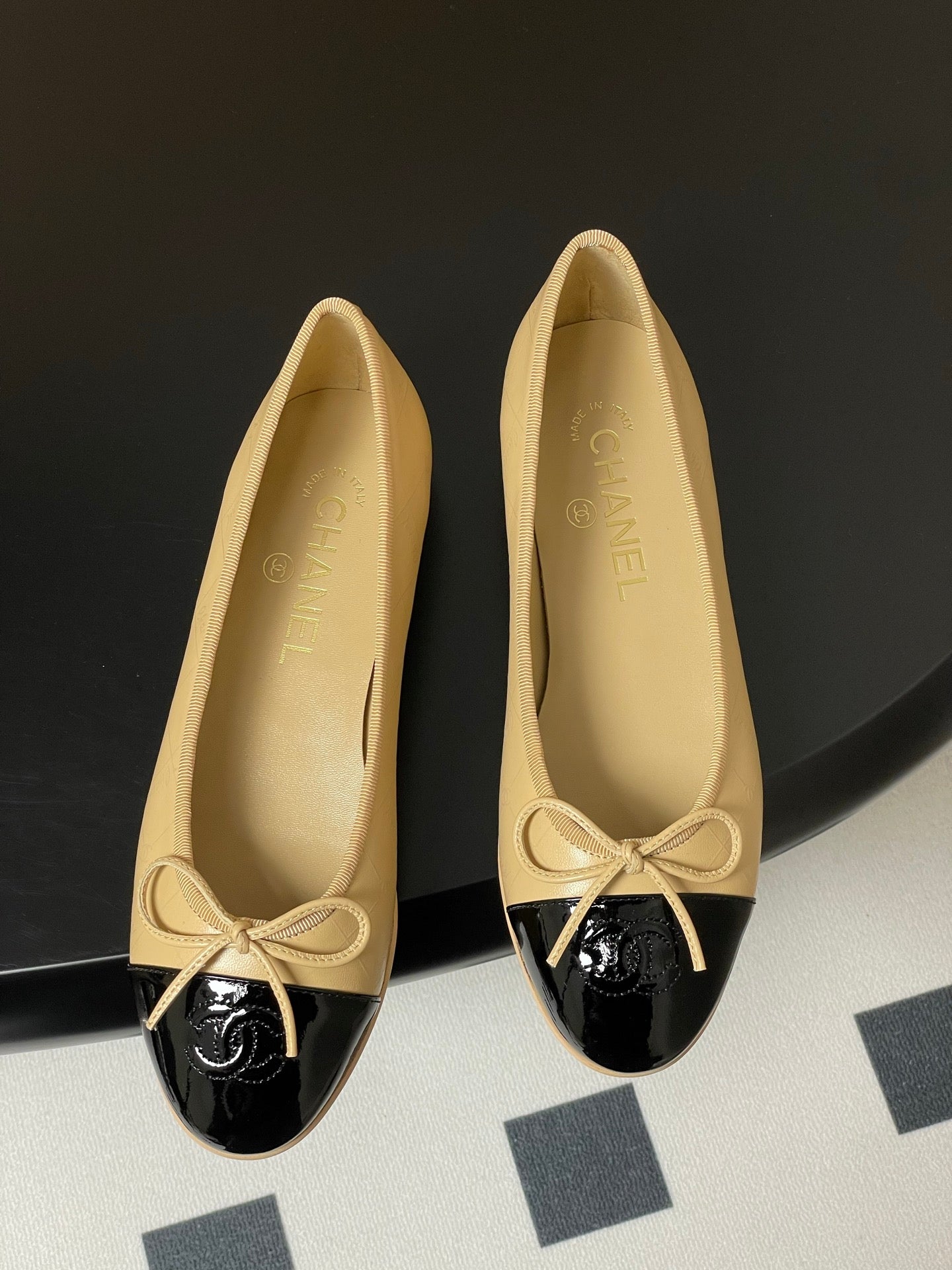 CC 25P Beige Black Quilted Calfskin
