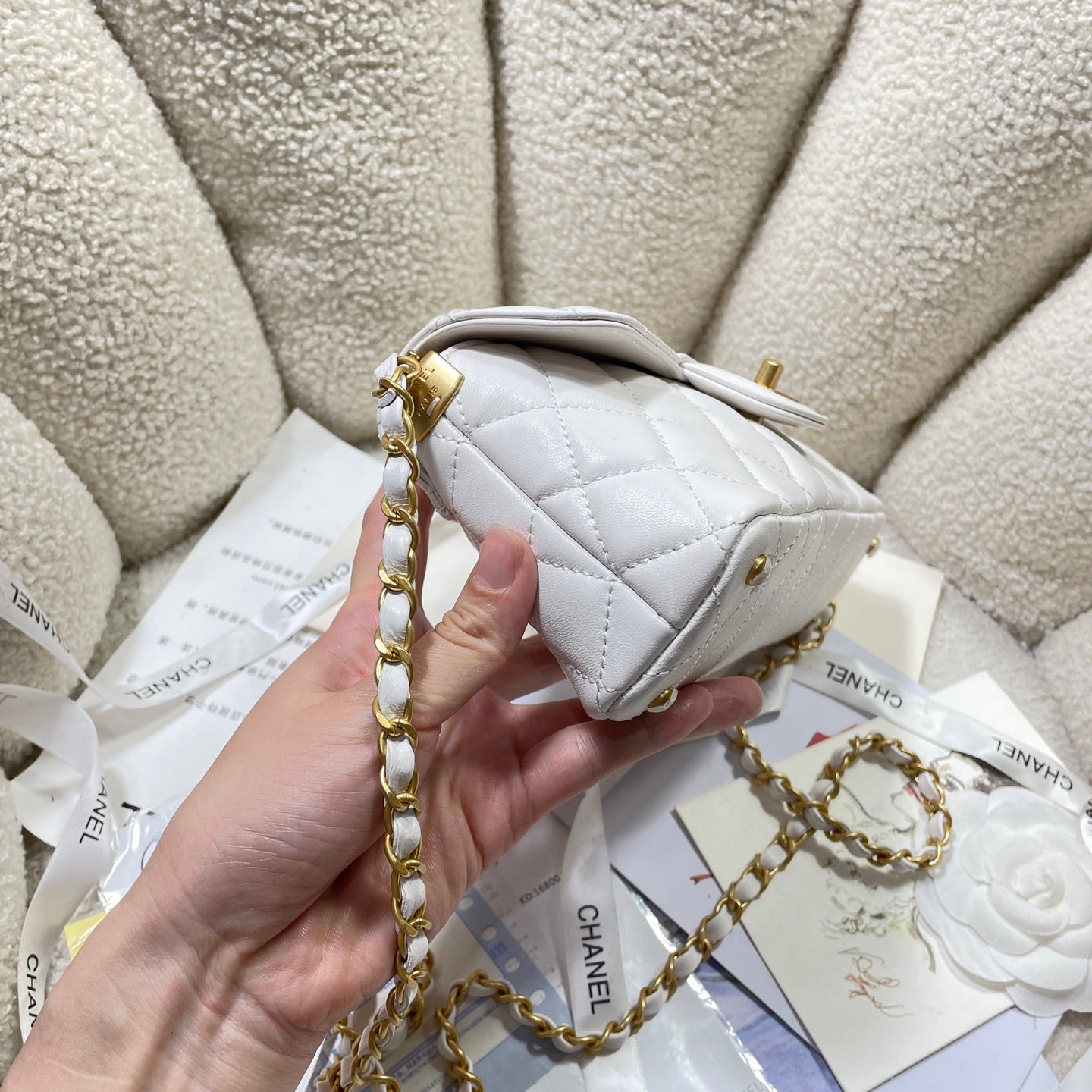 CC 25P Mini Flap Bag 22cm Top Handle Cream Calfskin Gold Hardware