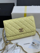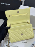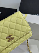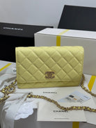 CC 25P Wallet On Chain 19cm Yellow Pastel Cowhide Heart Rhinestone 243595
