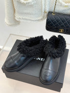CC 25s Furry Snow Boots Black Leather Wool 512066