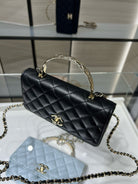 cc 25S Woc Top Handle 19cm Black Grained Calfskin Light Gold Hardware
