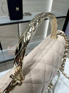 cc 25S Woc Top Handle 19cm Beige Grained Calfskin Light Gold Hardware