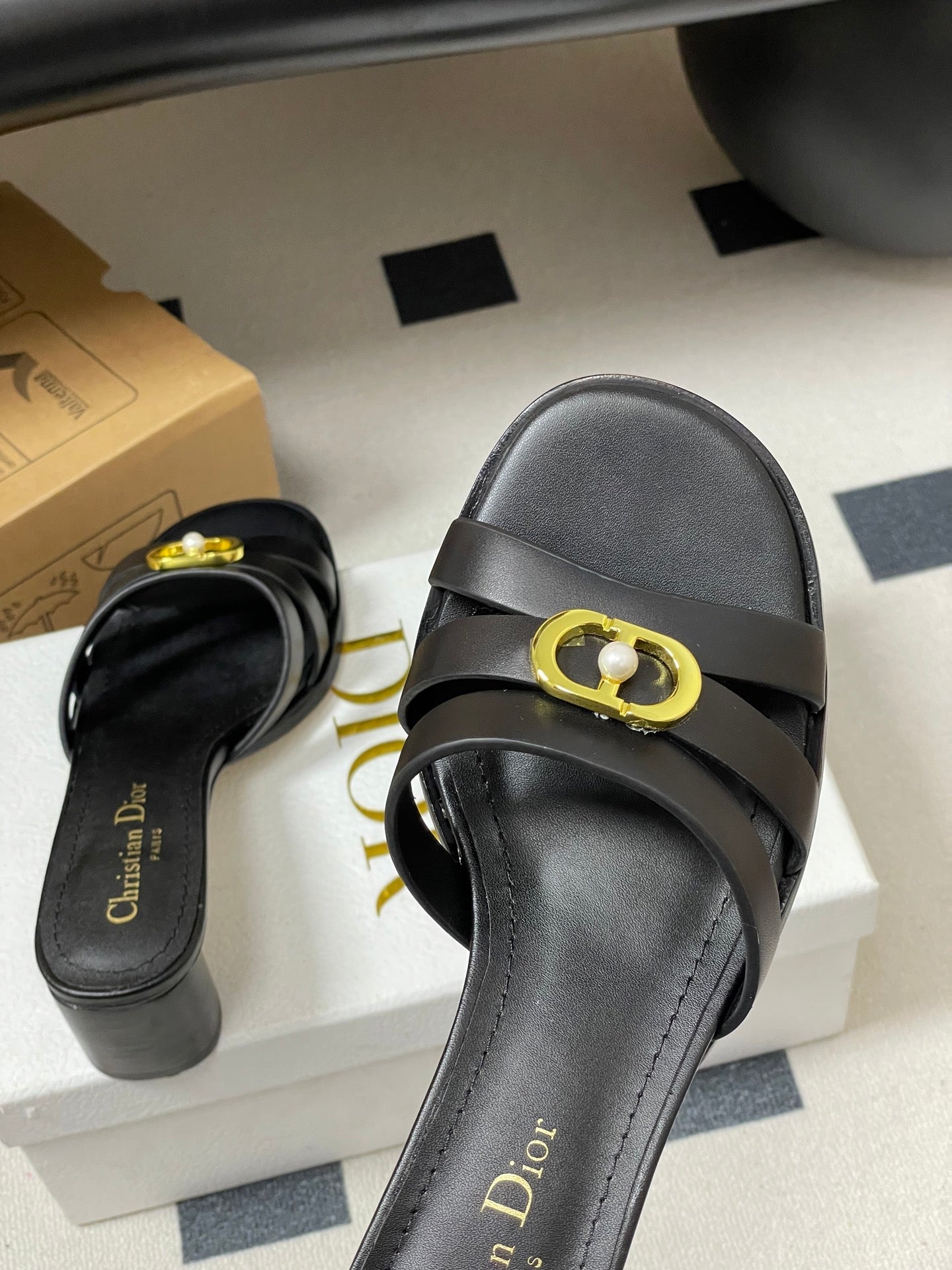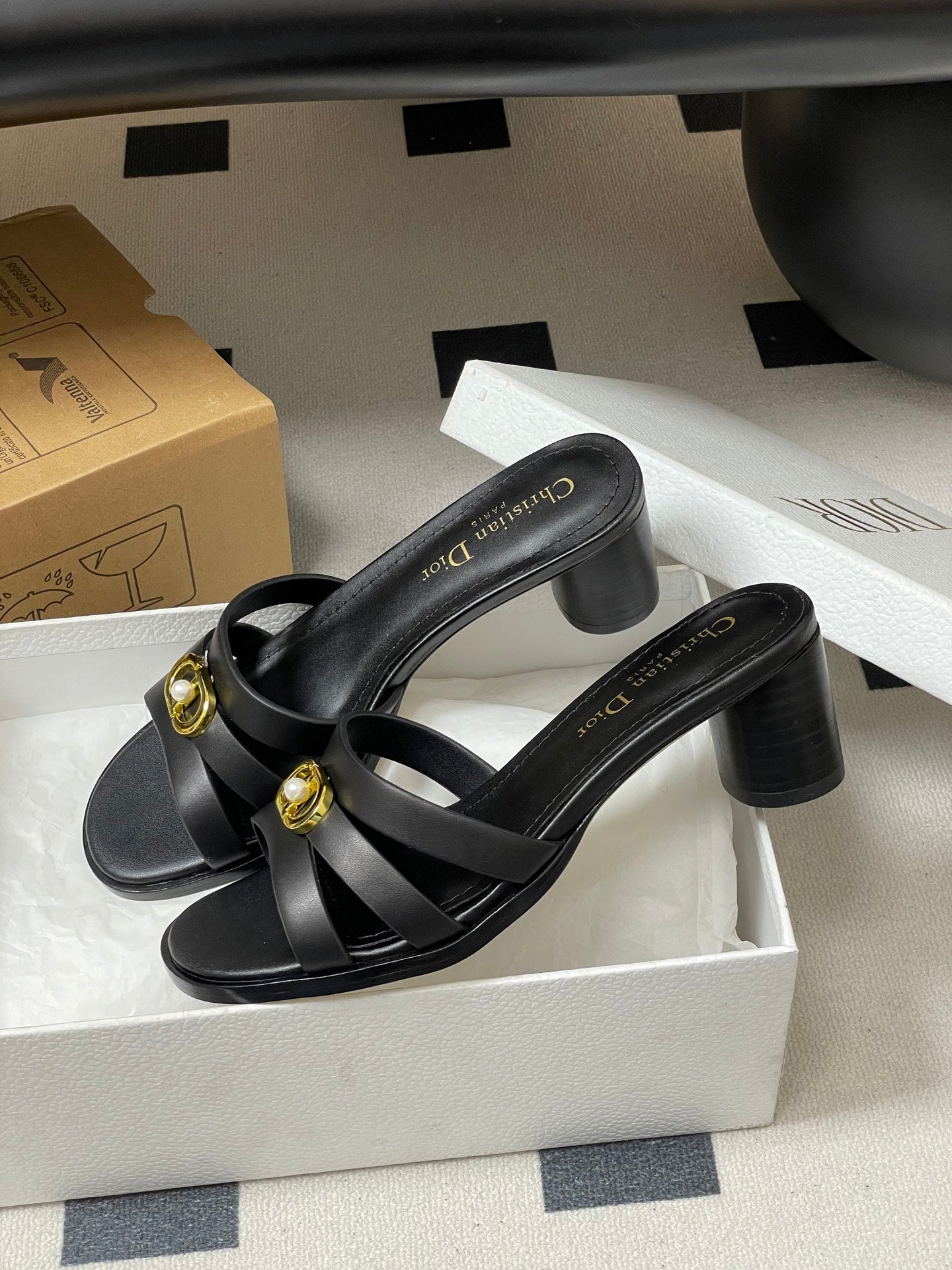 CD 26 Chunky Heel Sandals 50 Black Leather 593526