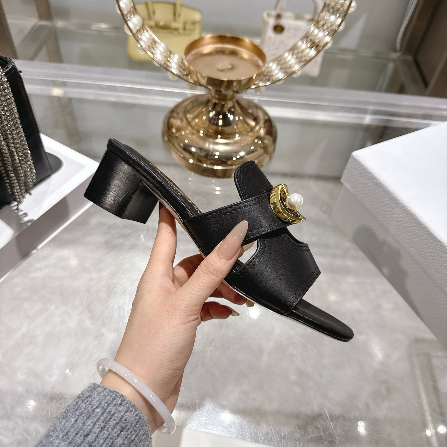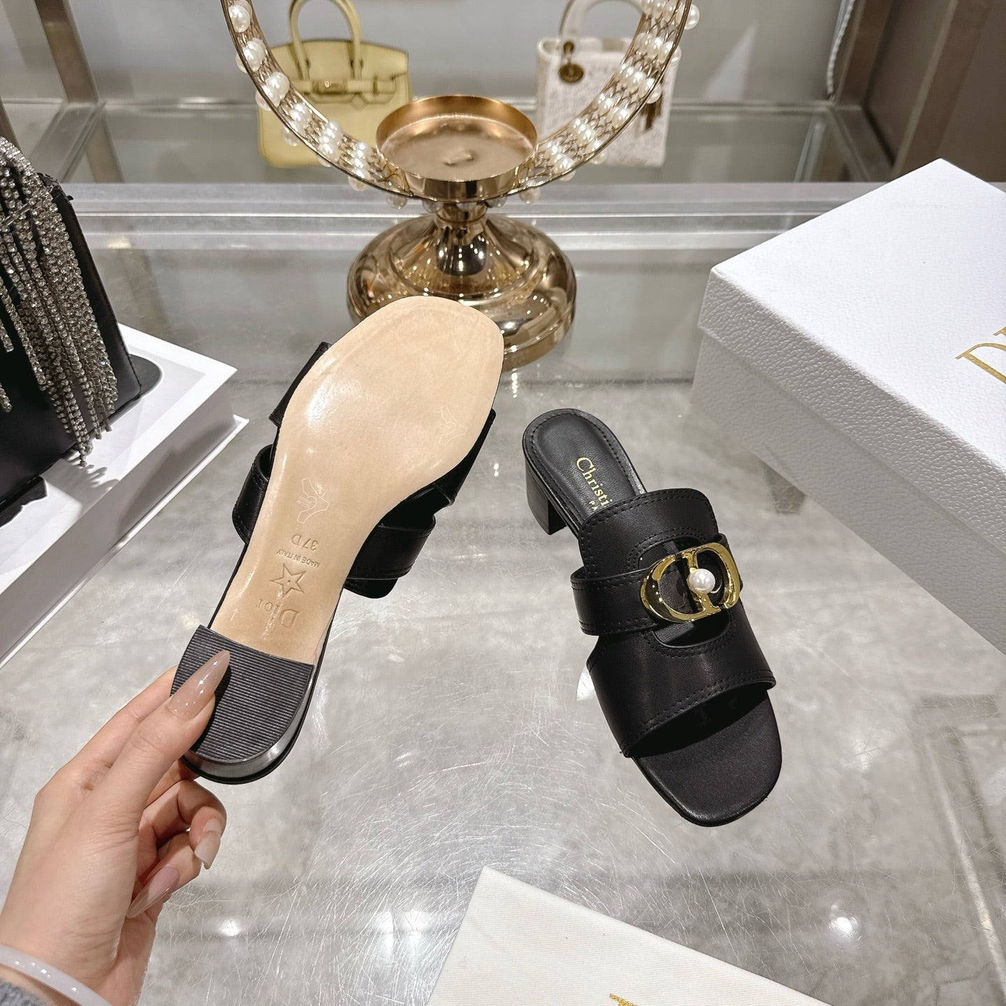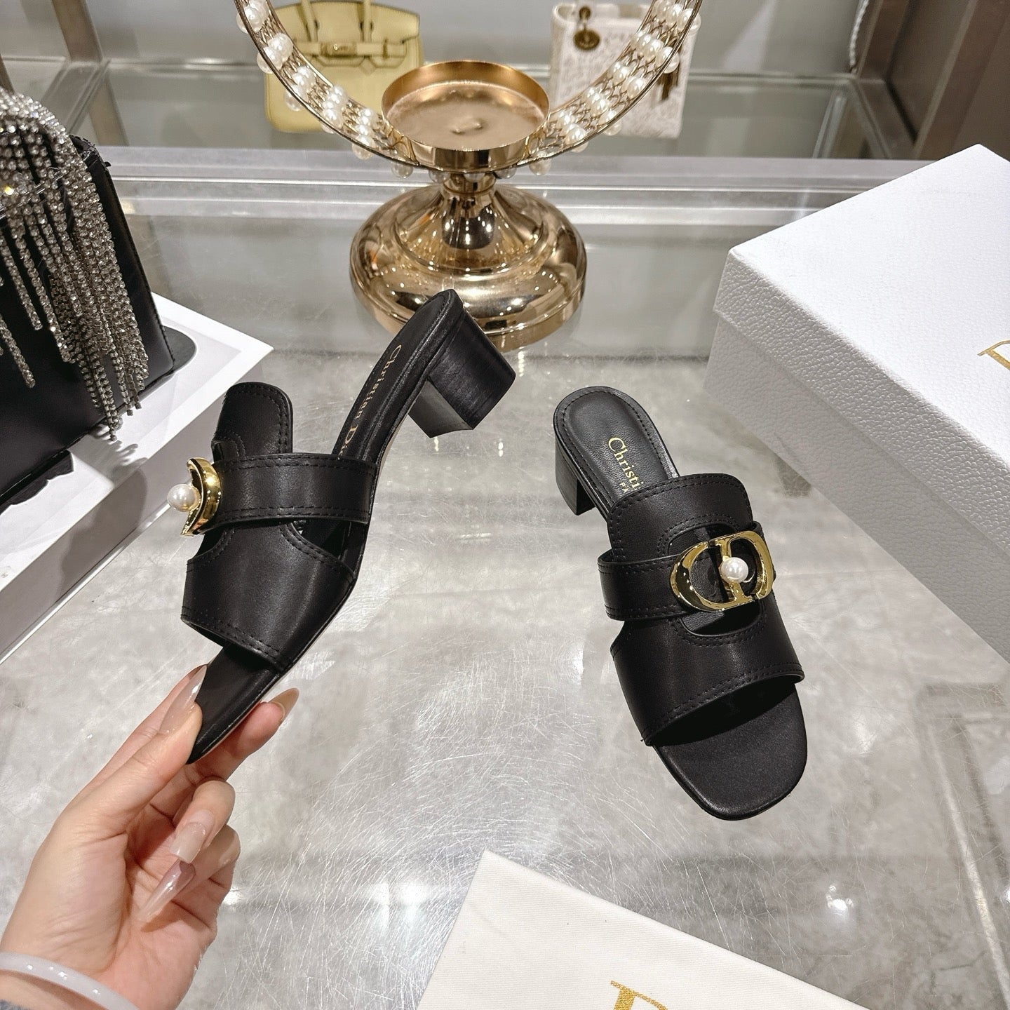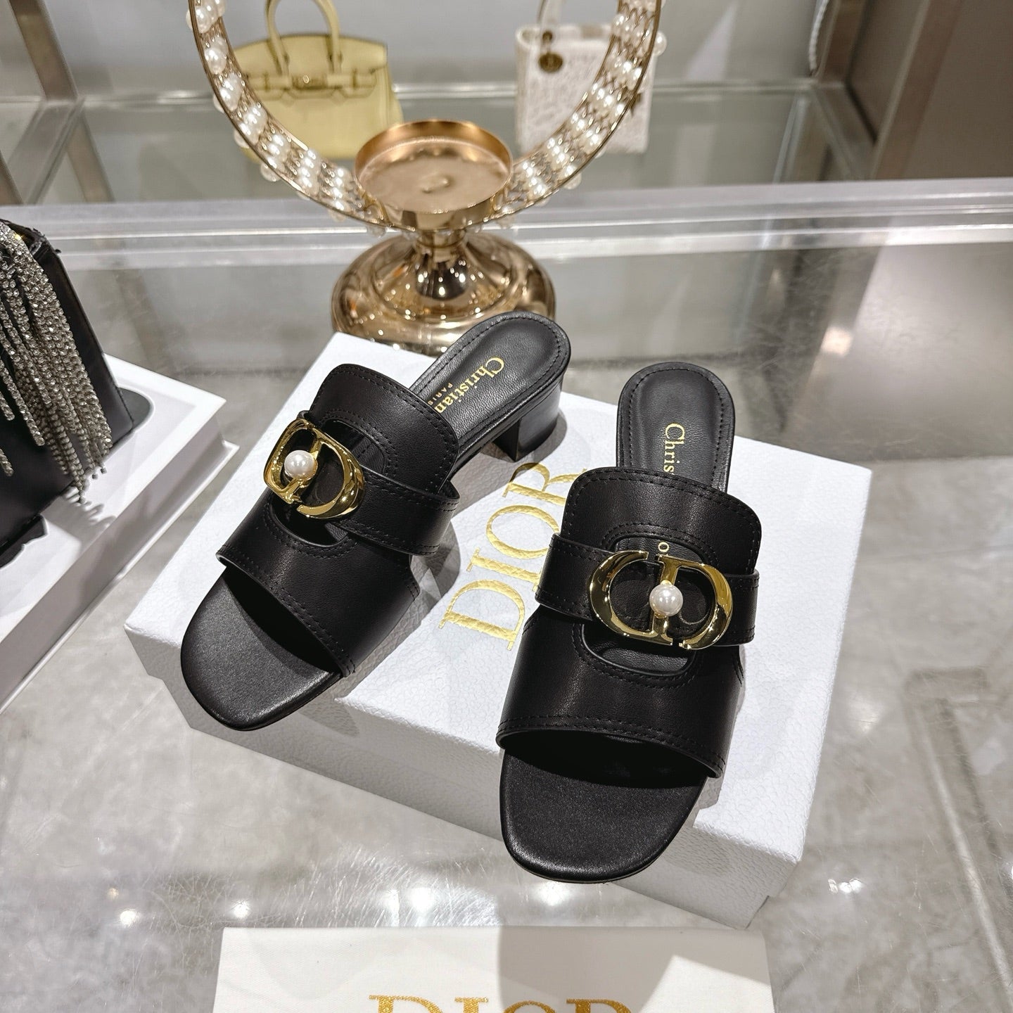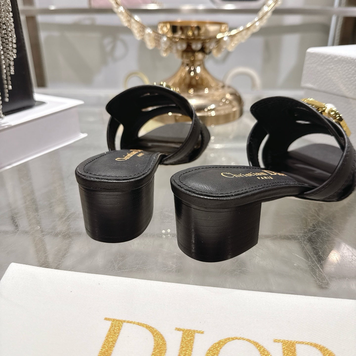 CD 26 Chunky Heel Sandals 35mm Black Leather 592266