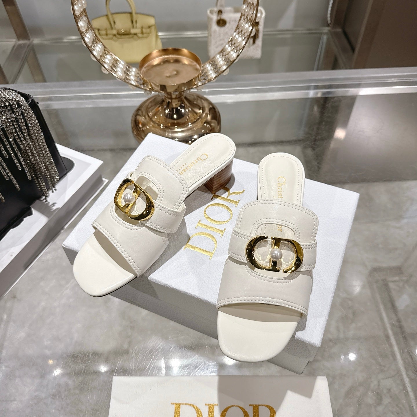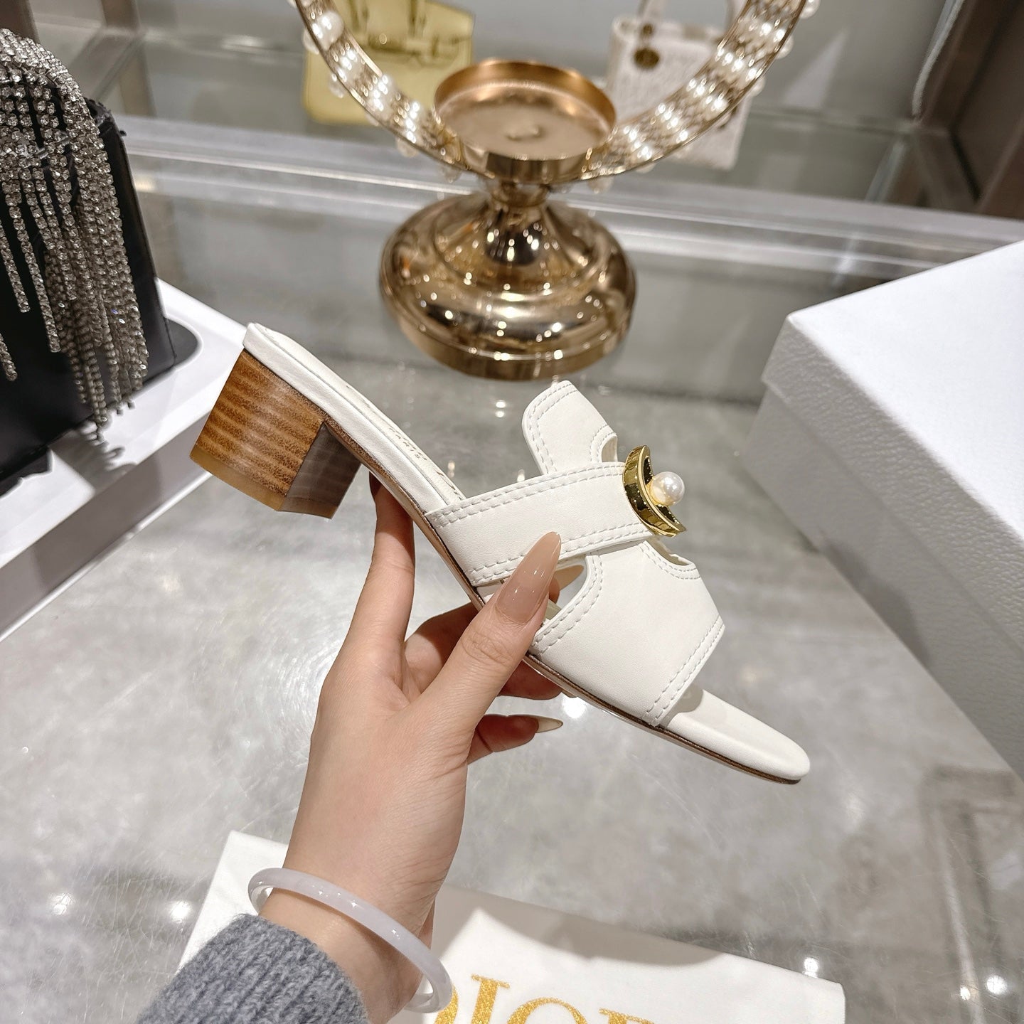 CD 26 Chunky Heel Sandals 35mm White Leather 592267