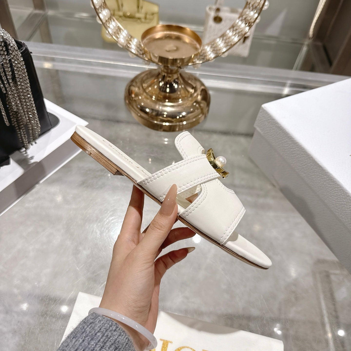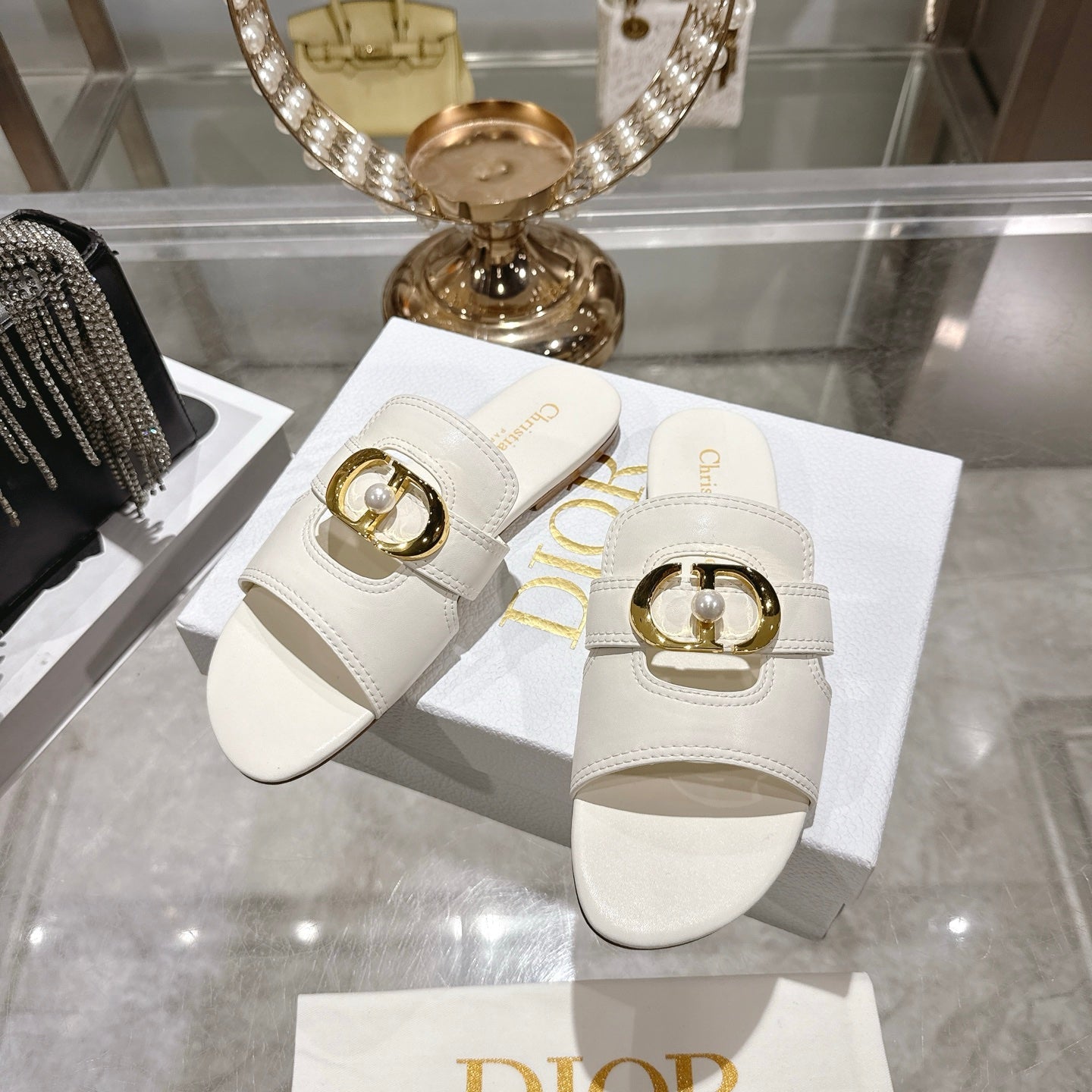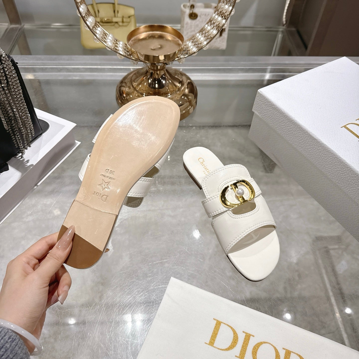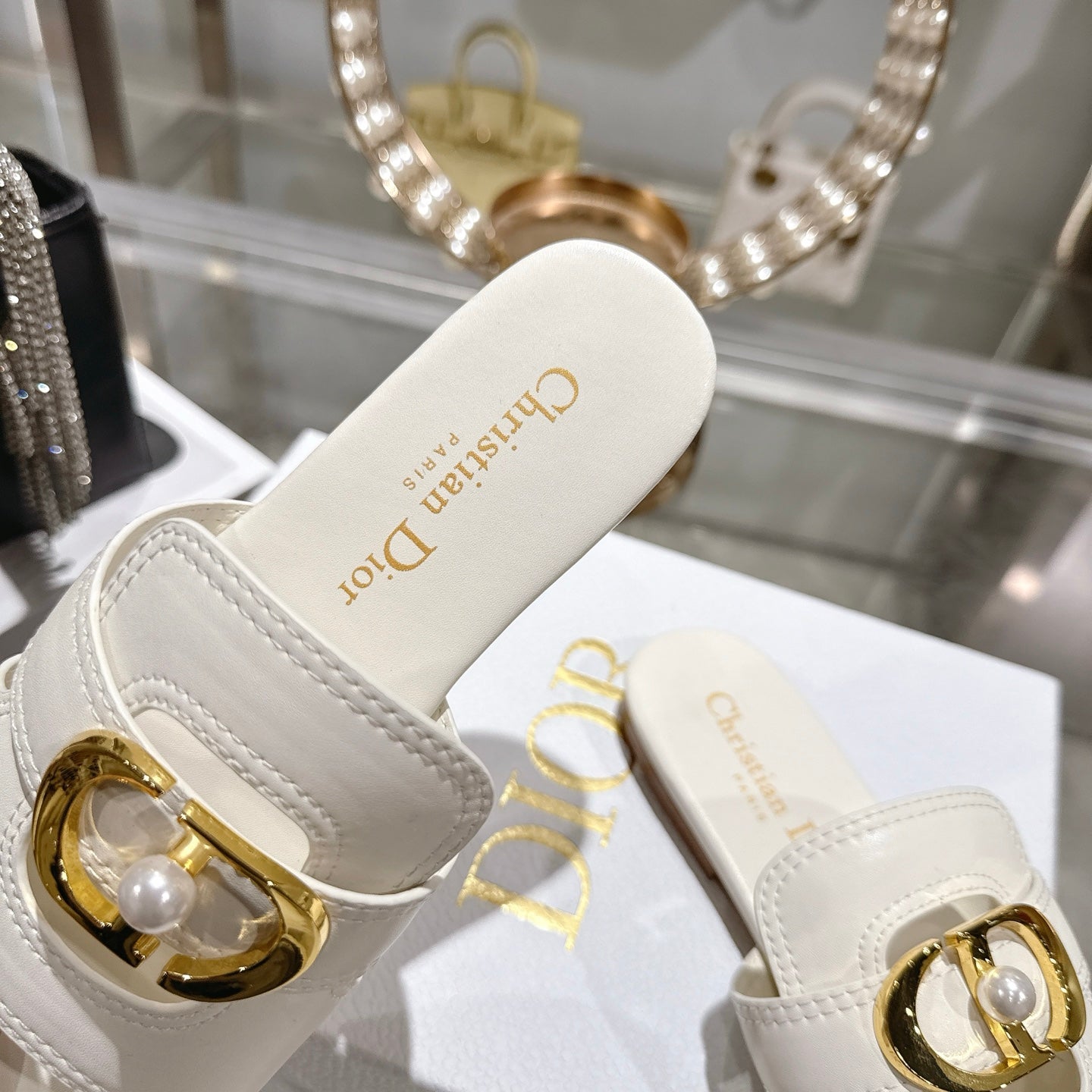 CD 26 Chunky Heel Sandals White Leather 592272