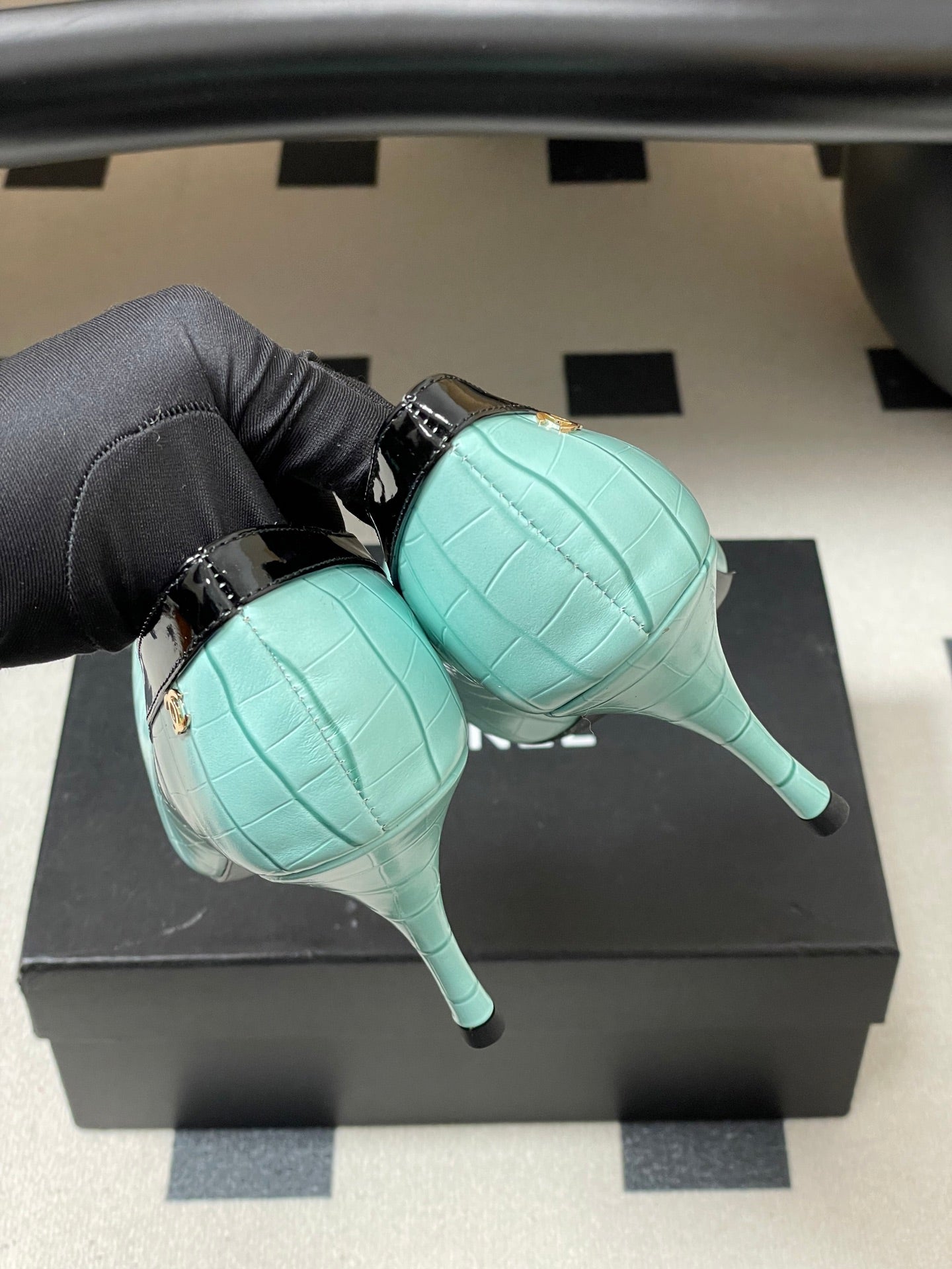 CC 26 Crocodile-embossed Pump Light Blue mix Black Calfskin 593368