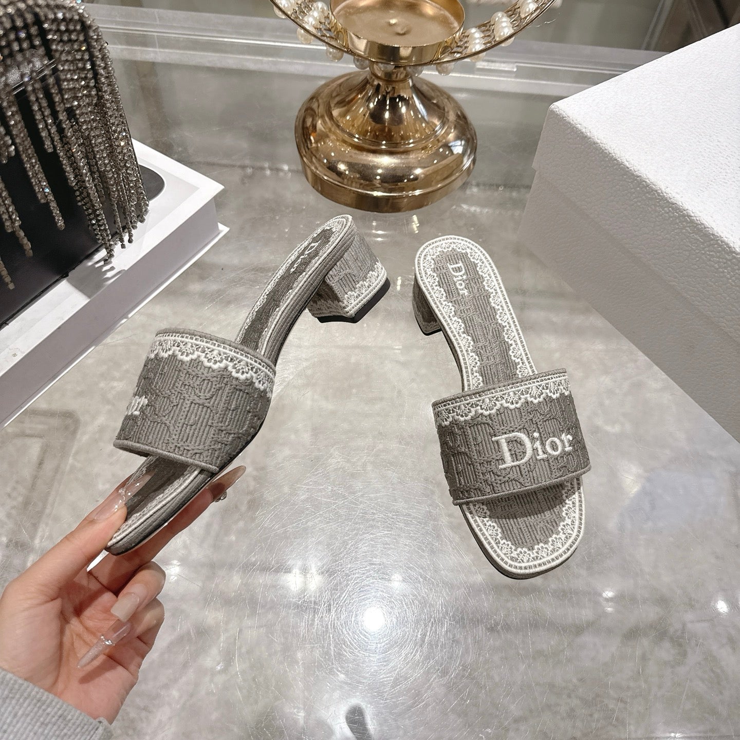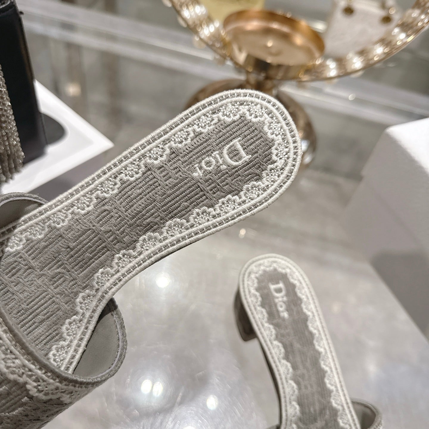 CD 26 Embroidered Sandals 45mm Gray White Canvas 592239