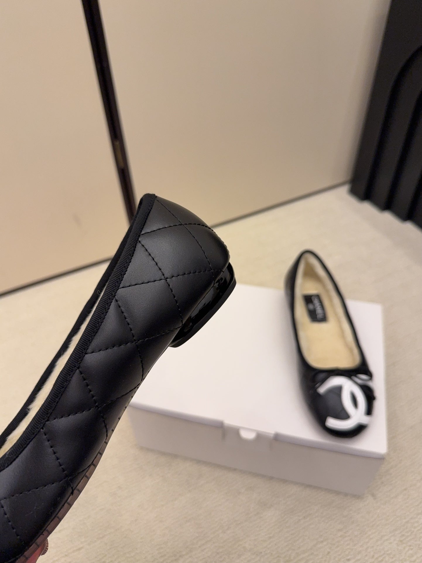 CC 26 Shearling Ballet Flat Black Beige White Cowhide Wool 588920