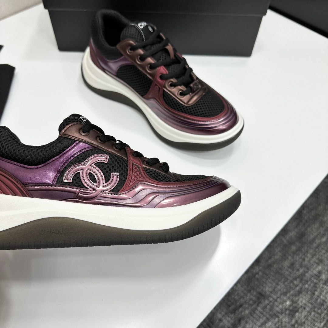 CC 26s Casual Sneakers Black Plum Purple Fabric Cowhide 626381