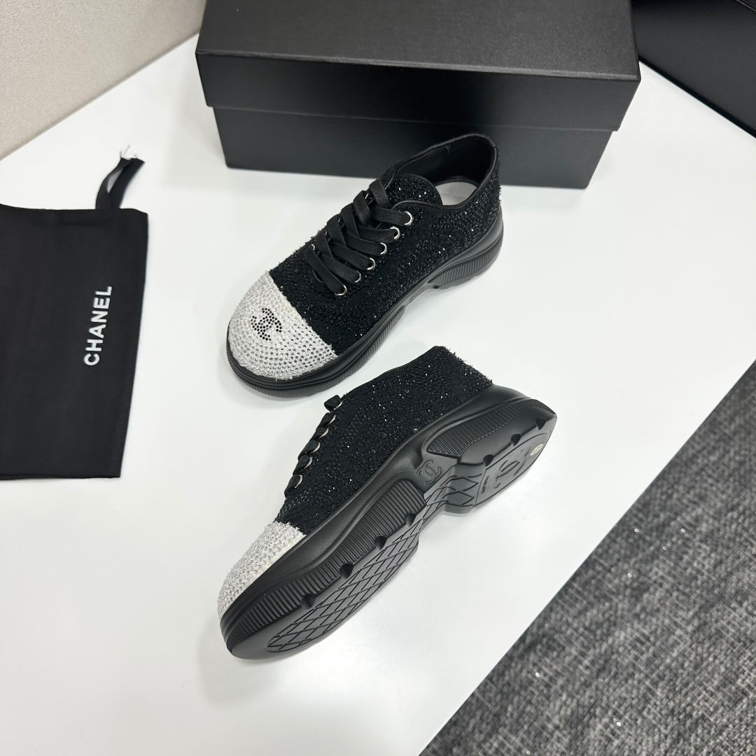 CC 26s Casual Sneakers Rhinestones Black Mesh Sheepskin 626362