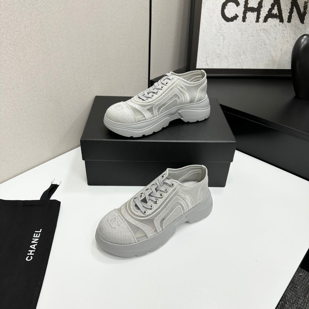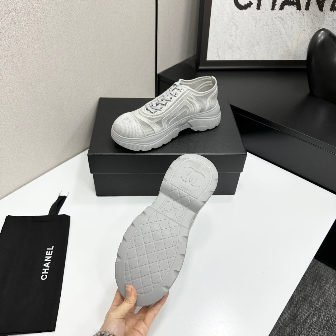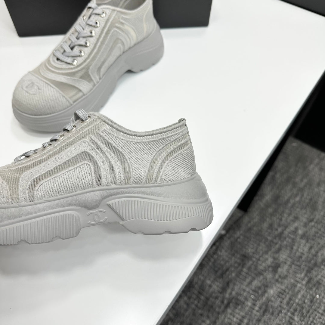 CC 26s Casual Sneakers Rhinestones Light Gray Mesh Sheepskin 626363