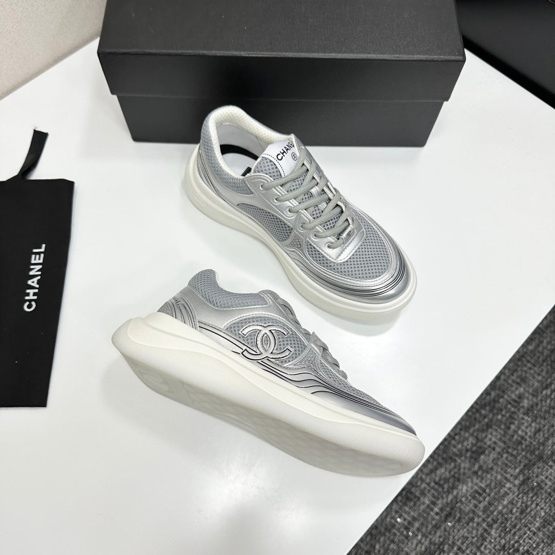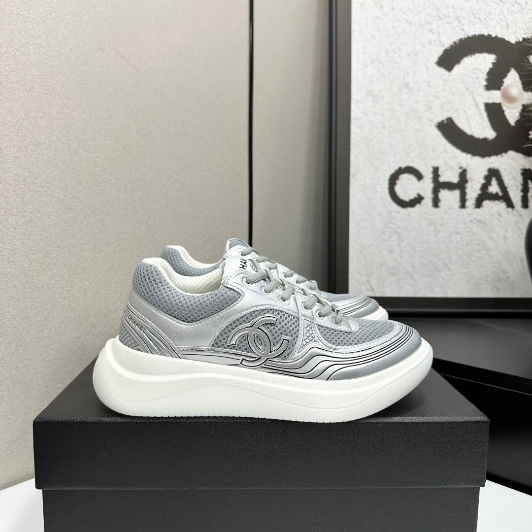 CC 26s Casual Sneakers White Sliver Fabric Cowhide 626384
