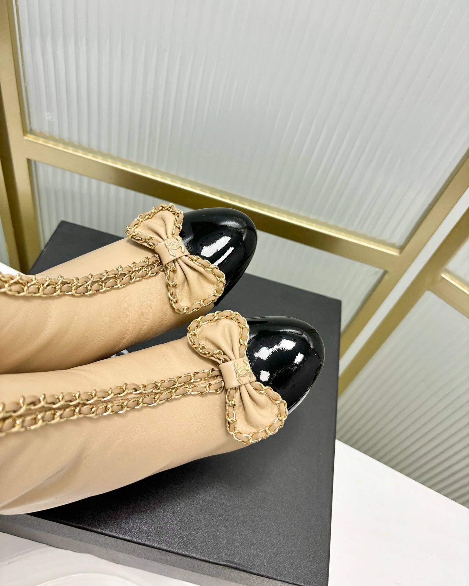 CC Ankle Boot 65 Beige Calfskin Black Patent Calfksin Leather Strap