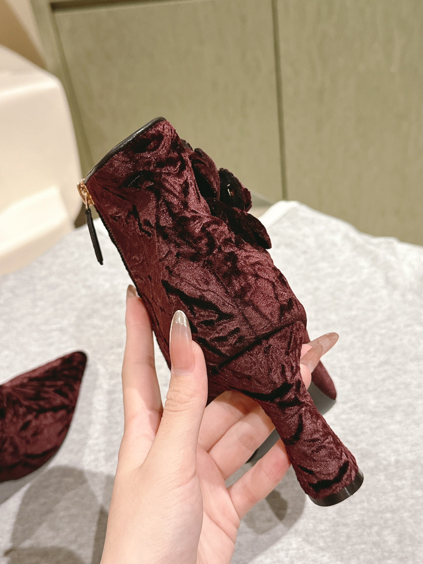 CC Ankle Boots 85mm Brown Red Rough Velvet Fabric