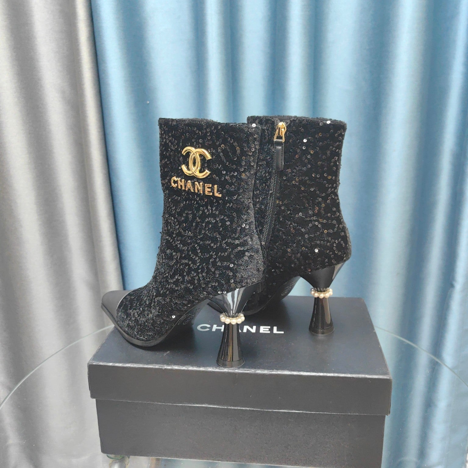 CC Ankle Boots Black Beaded Fabric And Cowhide