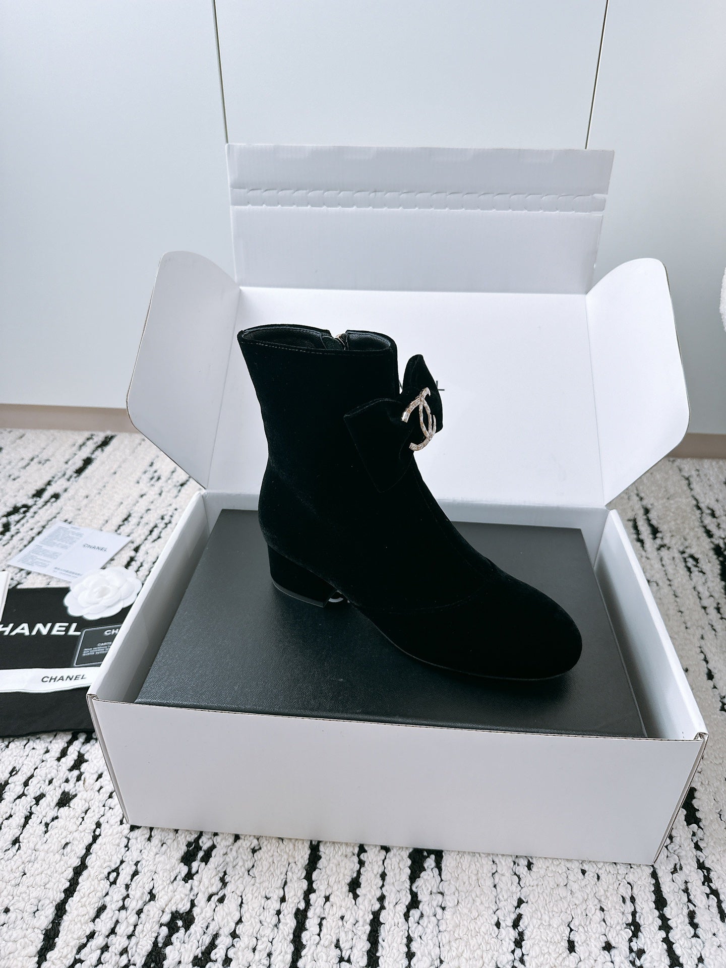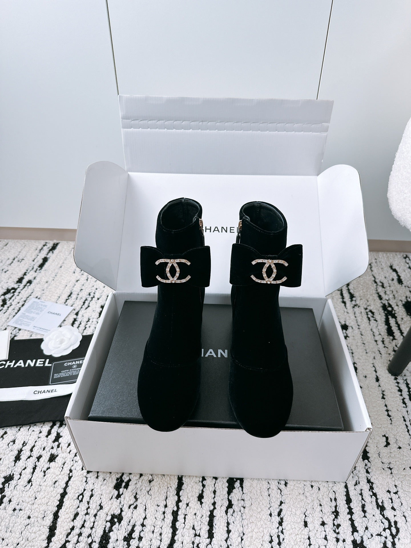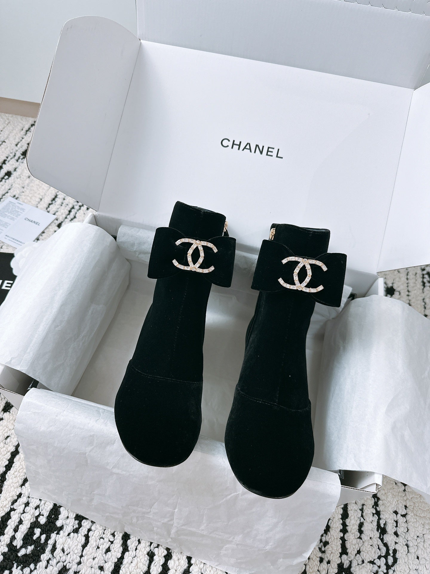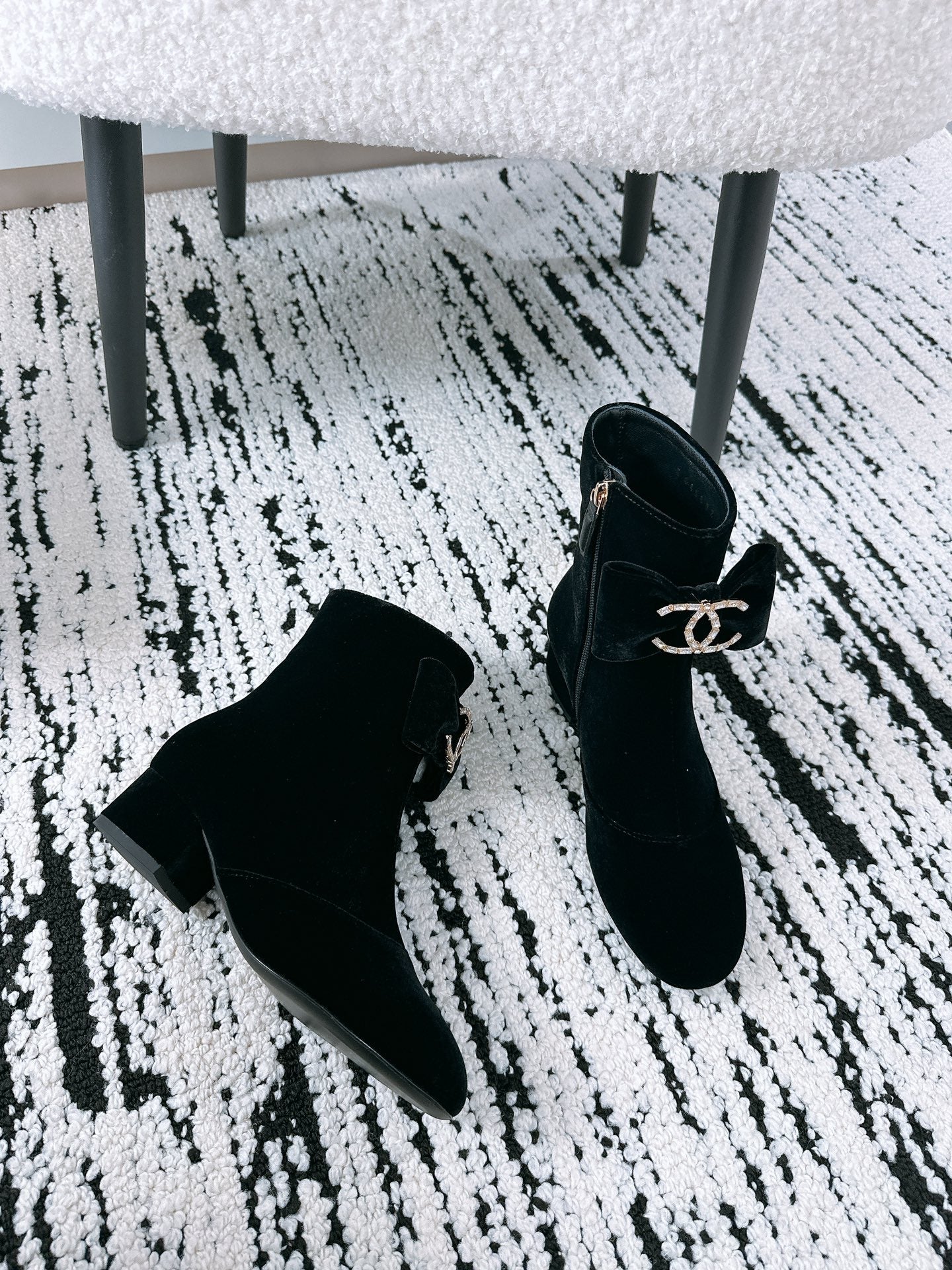 CC Ankle Boots In Black Velvet With Bow Tie 144659