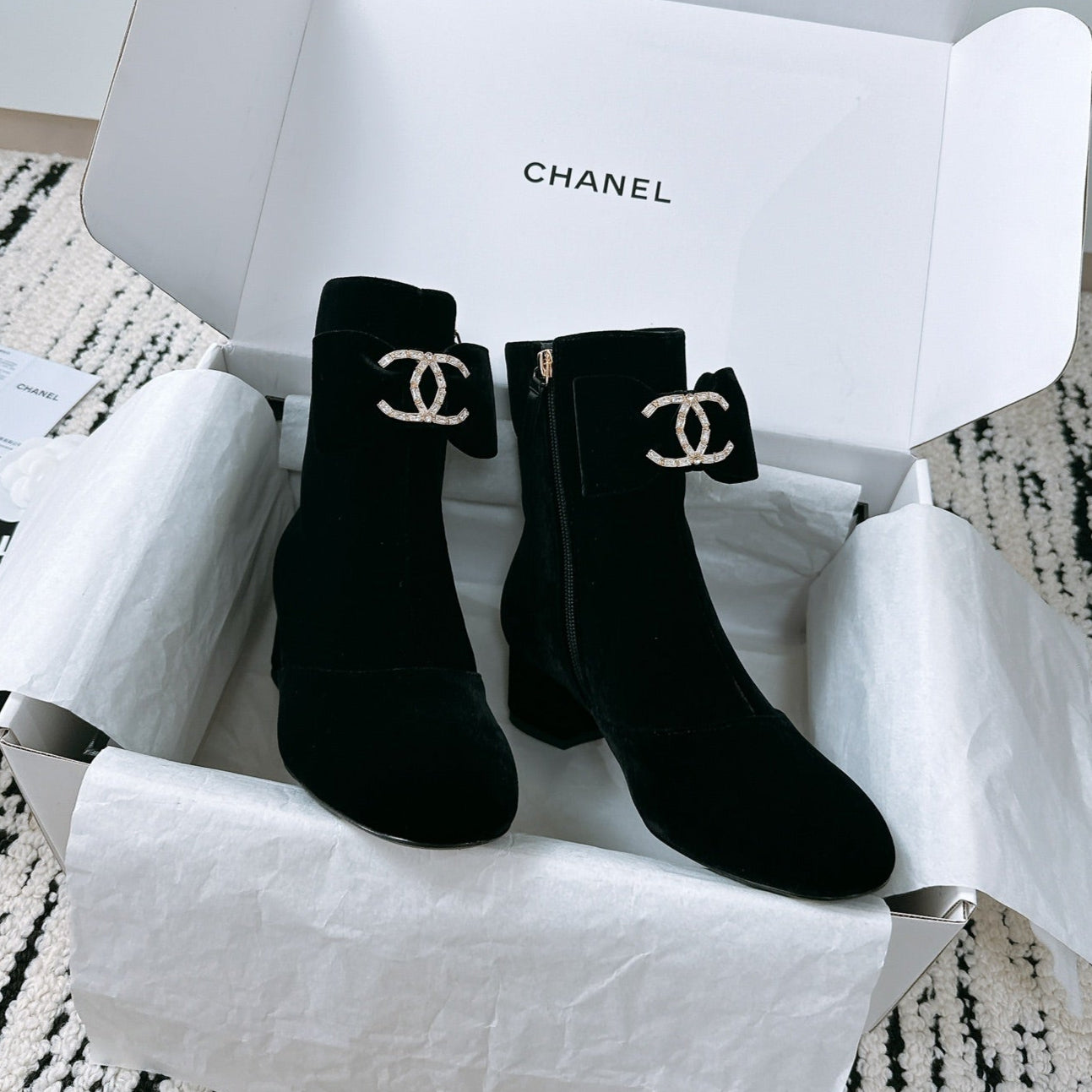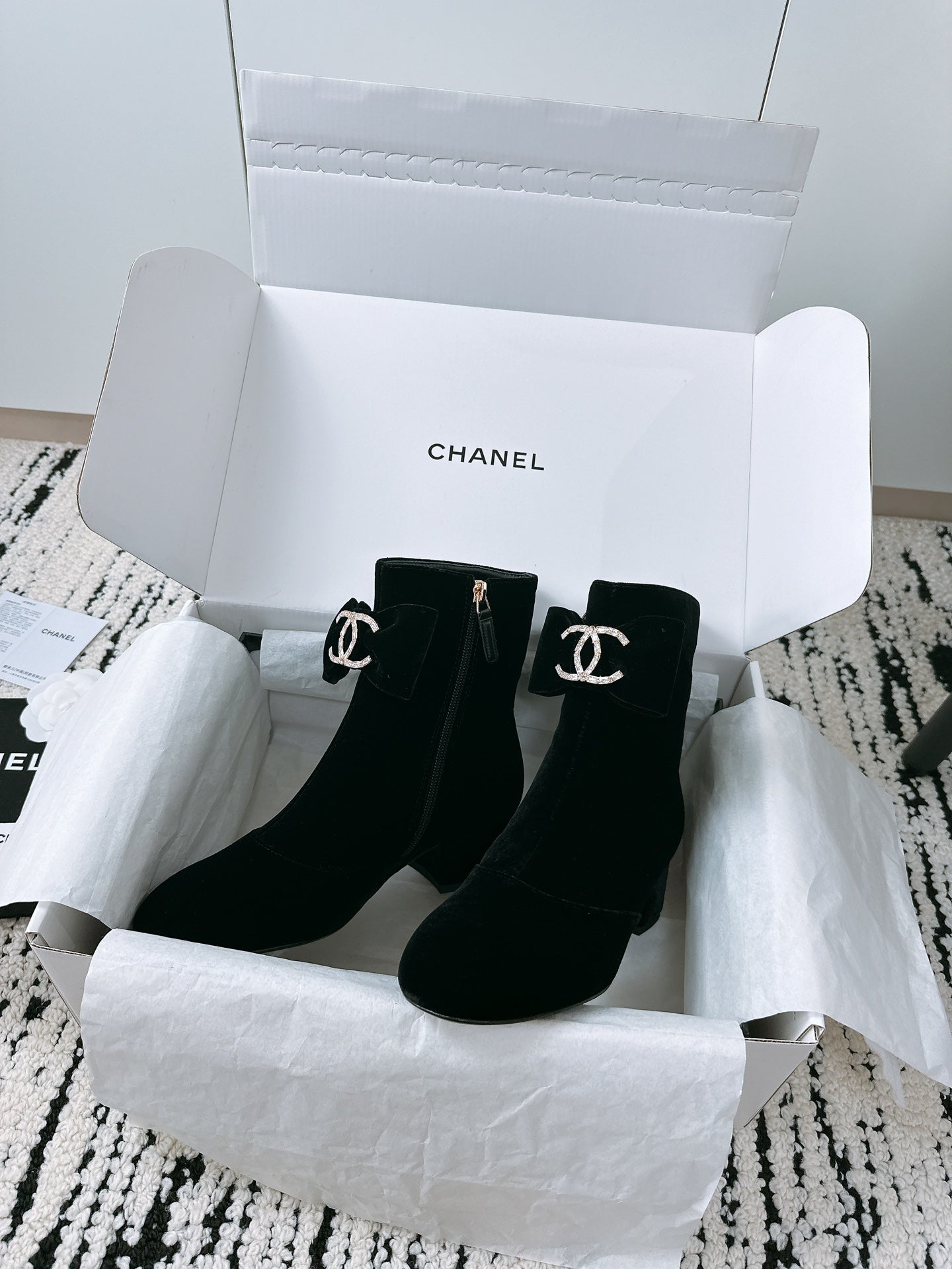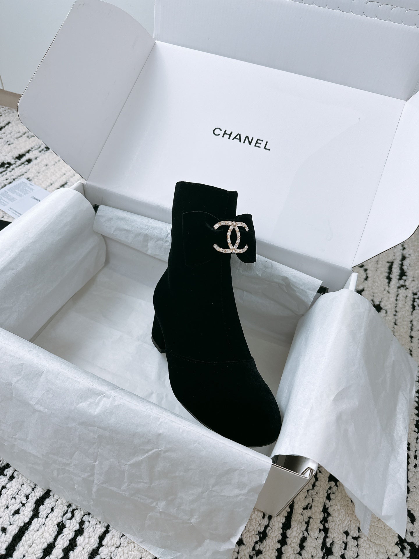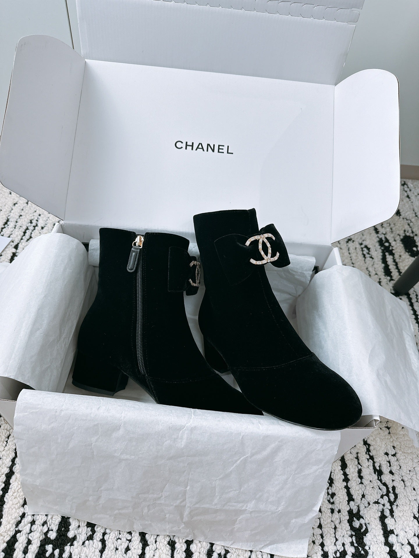 CC Ankle Boots In Black Velvet With Bow Tie 144659
