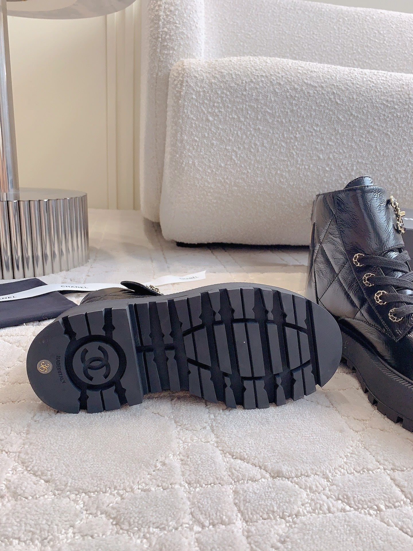 - Material: Wrinkled Calfskin With Chain
