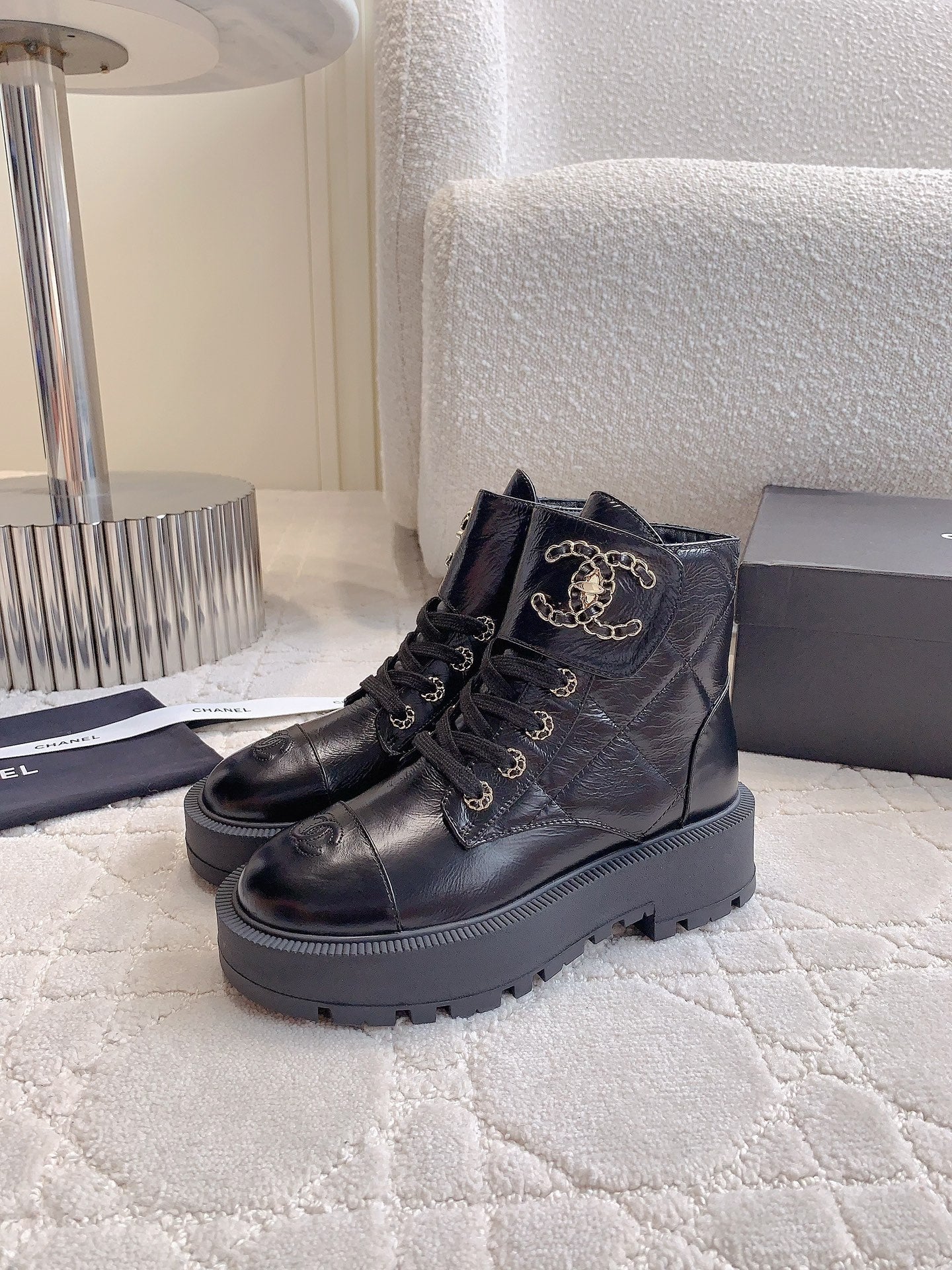 CC Ankle Boots In Black Wrinkled Calfskin 145488