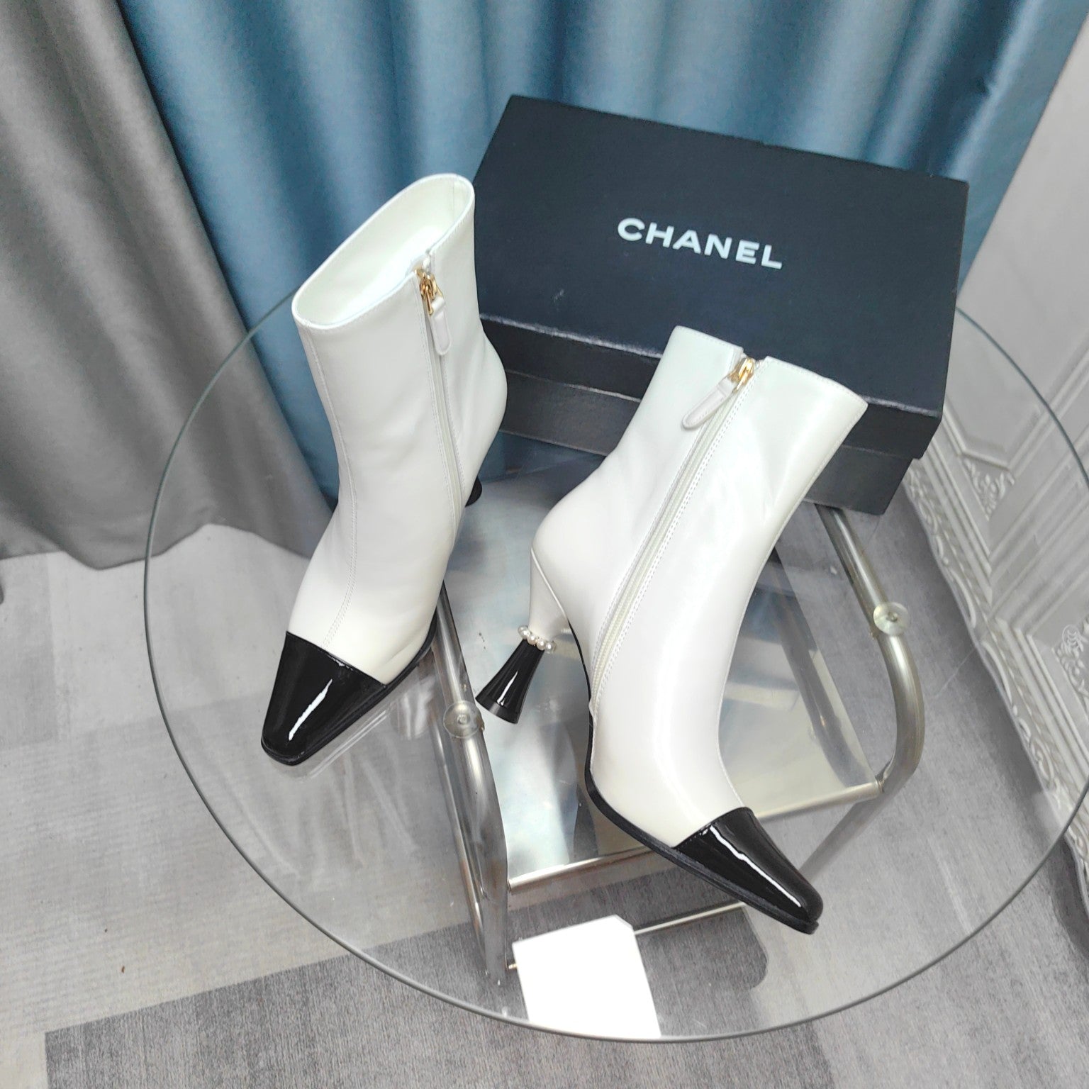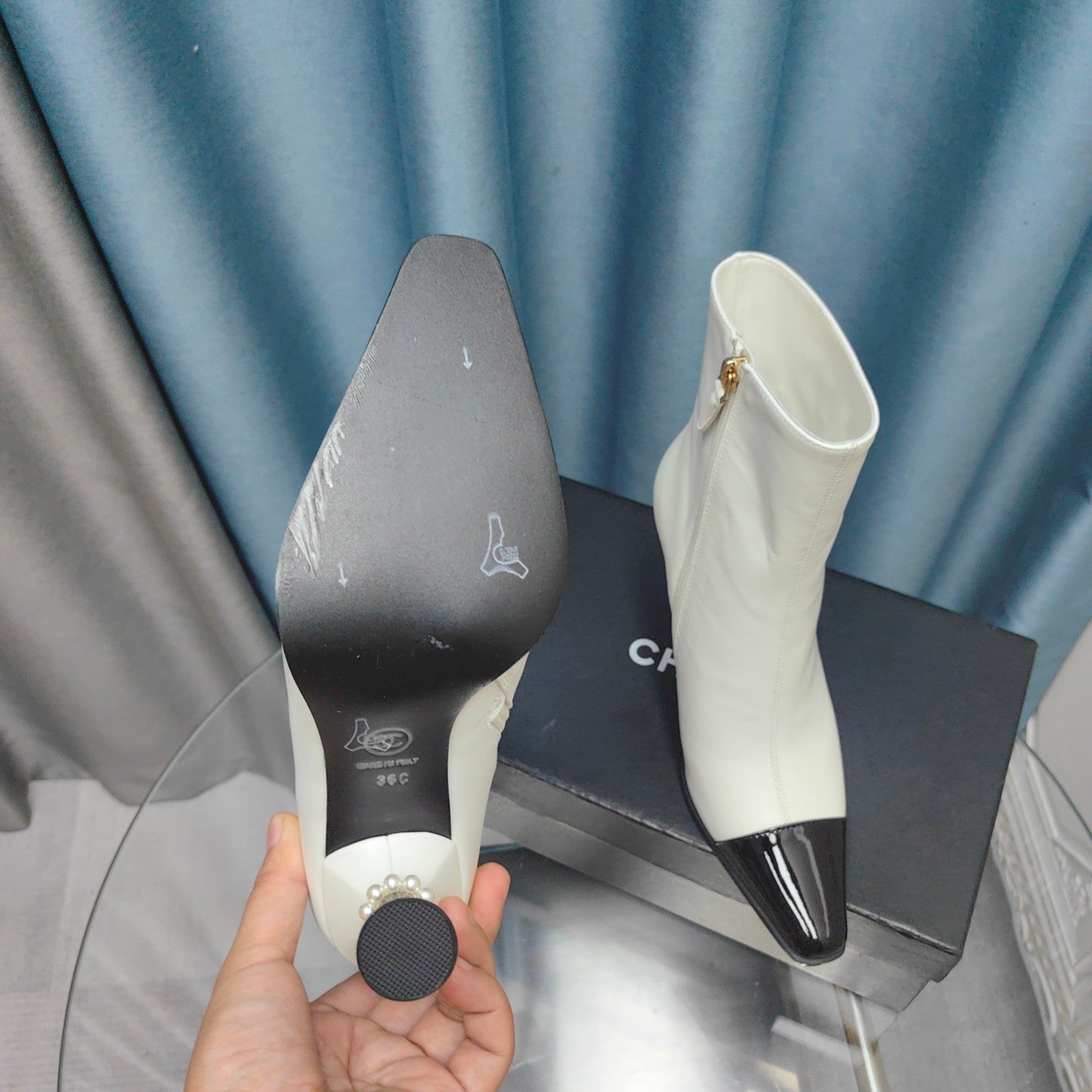 CC Ankle Boots White Cowhide And Lambskin