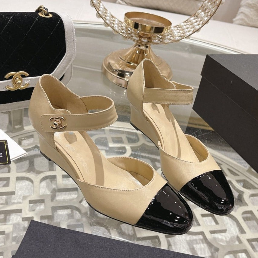cc ballet 6cm beige black wedge heel