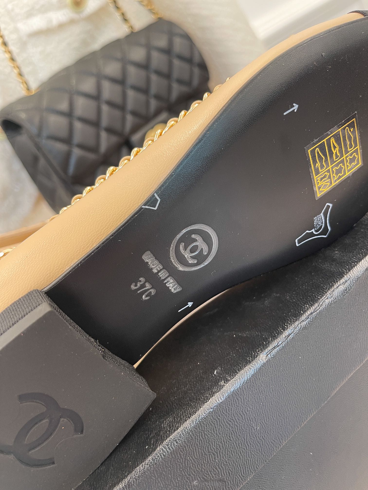 CC Ballet Flats 25mm Beige Bow Tie Chain Lambskin