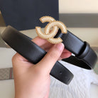CC BELT 30MM BUCKLE GOLD PEARL LEATHER BLACK