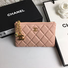 CC CLASSIC SMALL ZIPPED POUCH 15 PALE PINK CALFSKIN GOLD ICON