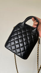 CC Clutch with chain 18 black brown suede calfskin