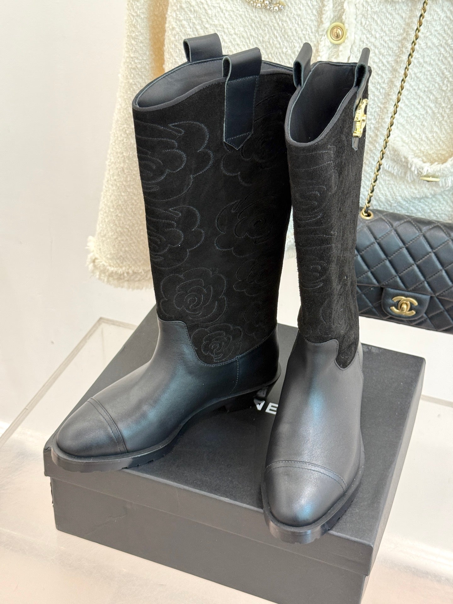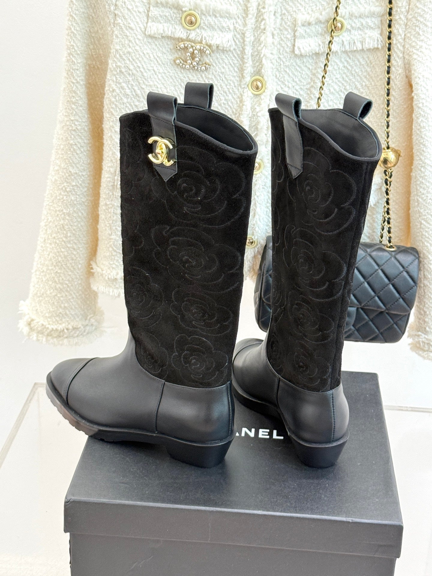 CC cowboy mid-calf boots black sheepskin suede 511984