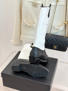 CC cowboy mid-calf boots black white sheepskin denim fabric 511981